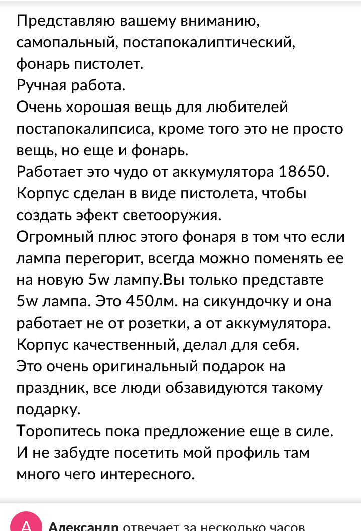 18 abob Постапокалипсис Все люди обзавидуются такому подарку... 6 лет назад "И кроме того это не просто вещь, но ещё и фонарь..." Авито Подарки Маркетинг Очумелые ручки Не пытайтесь покинуть Омск Постапокалипсис Пистолеты Объявление Длиннопост