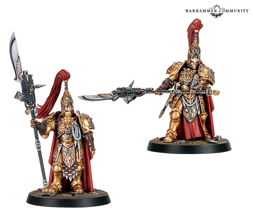 Новые Кустодии Стражи — это квинтэссенция образа Кустодес, который мы все знаем и любим: длинные копья Стражей, шлемы с высокими плюмажами и великолепная золотая броня. В наборе есть варианты с непокрытыми головами и элементы командного состава, включая вексиллу. Поклонники Warhammer 40,000 могли заметить, что они также идеально подойдут для представления Кустодиев Стражей в армии Адептус Кустодес...