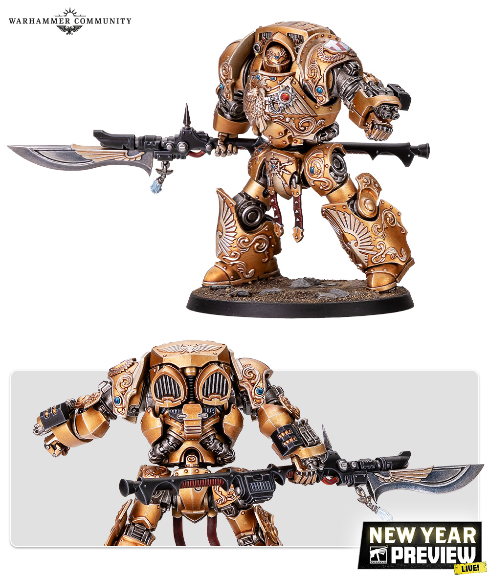 Возможно самым ярким и запоминающимся анонсом стало представление новых пластиковых миниатюр Легио Кустодес. Мы все уже успели на них посмотреть. Некоторые даже успели насладится их ауромитовыми доспехами.