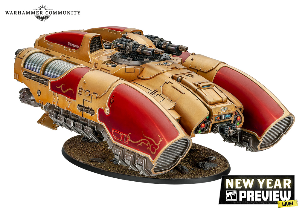 Будучи оснащённым универсальной карронадой (одинаково способной разносить корпуса танков или выкашивать ряды тяжёлой пехоты)… не говоря уже о встроенном вооружении (спаренная болтерная пушка Ластрум или тип оружия, которого мы раньше не видели: спаренный нейтрониевый каскадный проектор). Представьте себе основной боевой танк, только лучше.