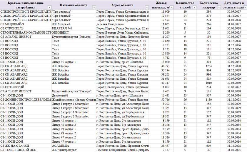 Хочу поделиться ресурсом, где можно бесплатно скачать в Excel таблицу всех строящихся жилых домов в РФ, информацию о которых застройщики официально опубликовали за последний месяц: