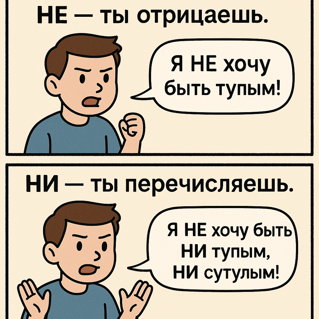 28 westakof Все уже знают про ТСЯ/ТЬСЯ, но неужели всем плевать на НЕ/НИ?! 11 дней назад НЕ -- ты отрицаешь.Я НЕ хочу быть тупым!НИ - ты перечисляешь.Я НЕ хочу быть НИ тупым, НИ сутулым! Сохраняй, запоминай, тыкай этим знанием в друзей =)А то бесит! Короткопост Граммар-наци Грамматические ошибки Бедность Ошибка Правила Крик души Нытье 5 1 Ещё 0