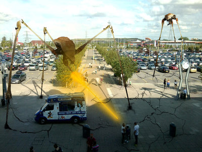 выглядело бы более правдоподобно, если бы у машин задняя была бы включена
