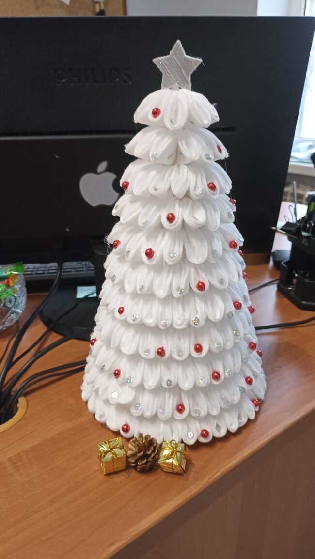 Жена сделала ёлочку на работу для поднятия настроения и создания праздничной атмосферы.