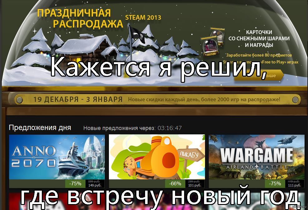 AleksShmaleks 11 лет назад Всех с наступающим, дорогие пикабушники! Криво клеил я. Думаю для некоторых актуально. :) [моё] Новый год Поздравление Steam Скидки в Steam