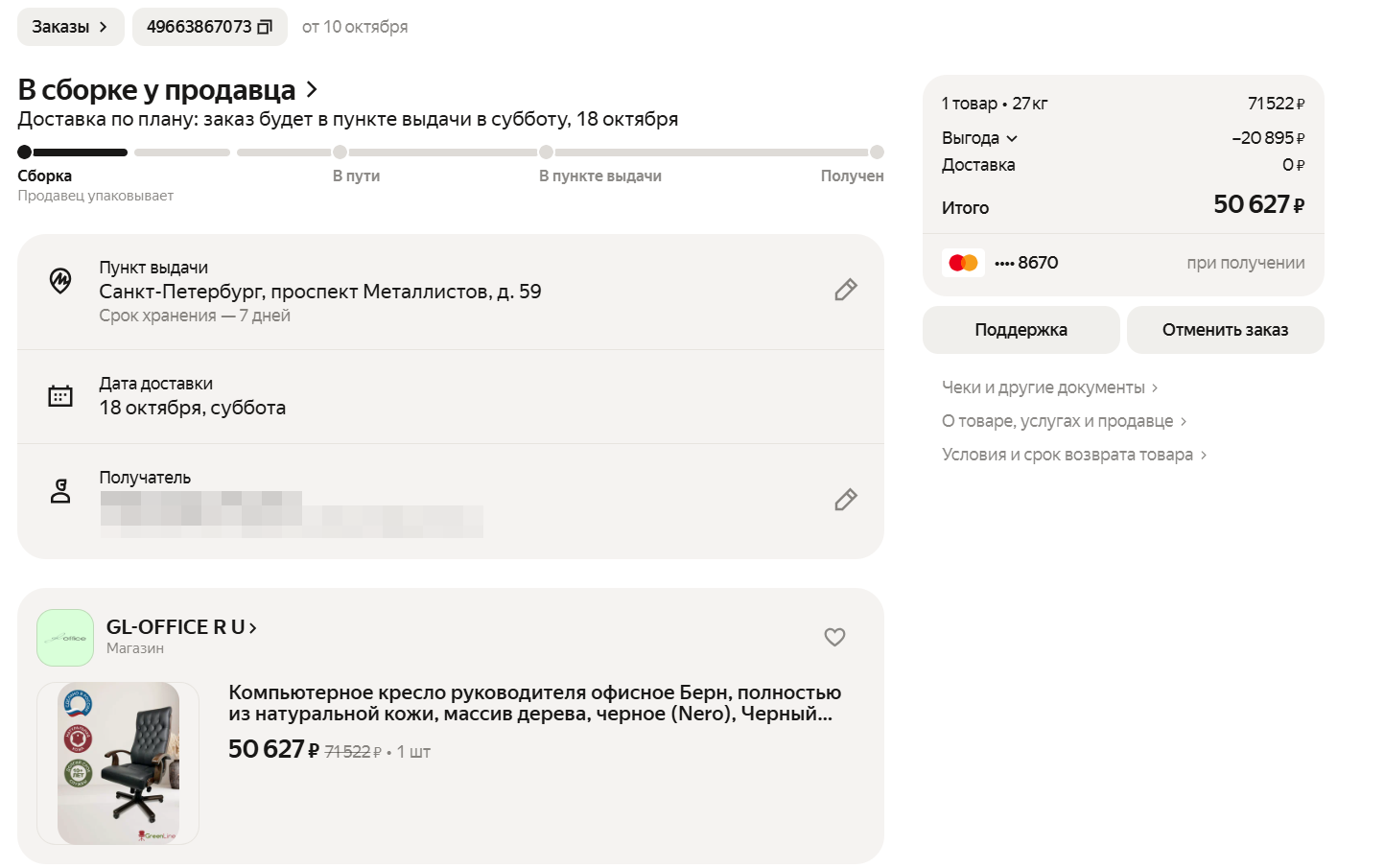 Вот такое кресло, если вам оно понравилось, то можете заказывать без предоплаты, если что-то не понравилось, то можете не забирать его из ПВЗ.