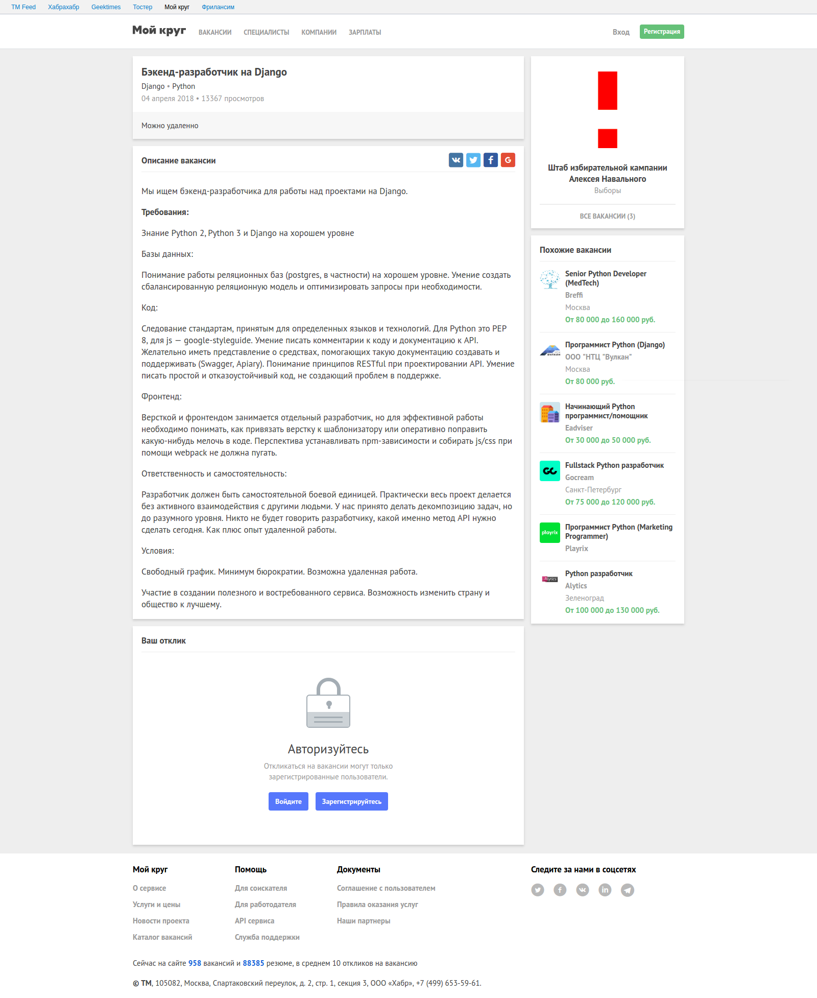 Набрел сегодня случайно на вакансию штаба Навального. Не пытаюсь агитировать ни за ни против него, да уже и поздно в принципе. Просто показалось интересным.