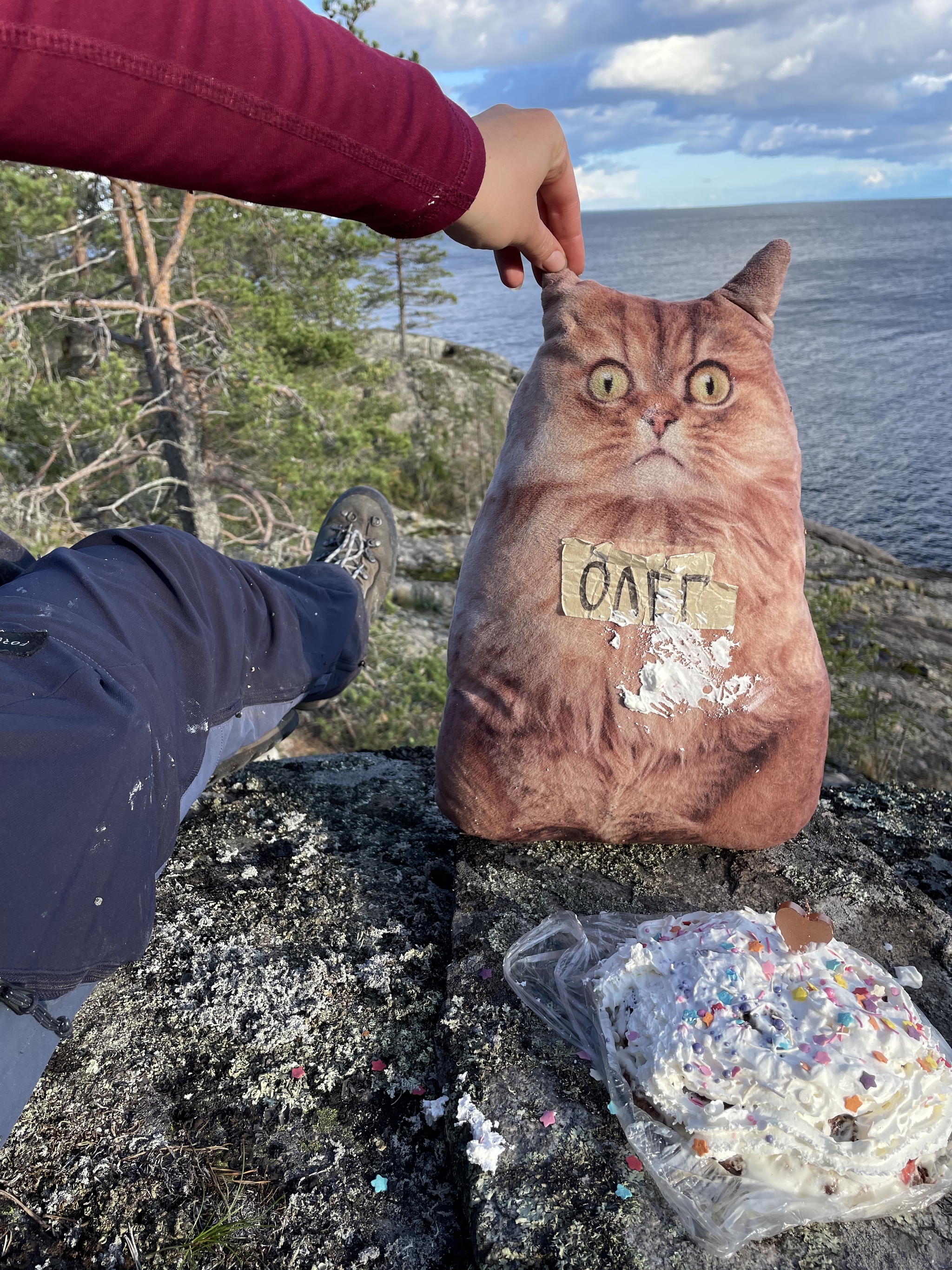 Это мы с Олегом гоняли в залив русалки на Ладоге. Я сделала тортик, Олег снял пробу.
