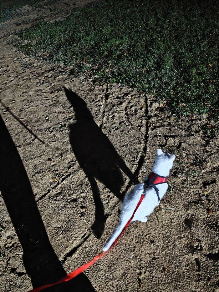 Вчера мы гуляли полчаса, потом из леса кто-то начал громко орать (скорее всего, какая-то сова) и мы пошли домой