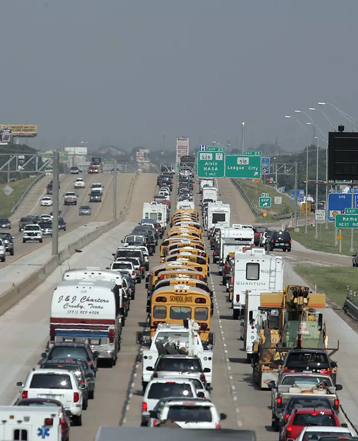 5.Паника тоже может стать генератором пробки. Так в сентябре 2005 года на штат Техас надвигался ураган 5-й категории "Рита". Население спешно эвакуировалось и выбрало для выезда самую популярную магистраль I-45, проходящую через весь штат. В считанные часы образовалась пробка в 160 километров. Несмотря на то, что водителям пришлось простоять в заторе 48 часов, тратя нервы, эта массовая эвакуация спасла много жизней. И кстати, на время урагана был закрыт Космический центр в Хьюстоне, в связи с чем контроль над Международной космической станцией был полностью передан российским коллегам.