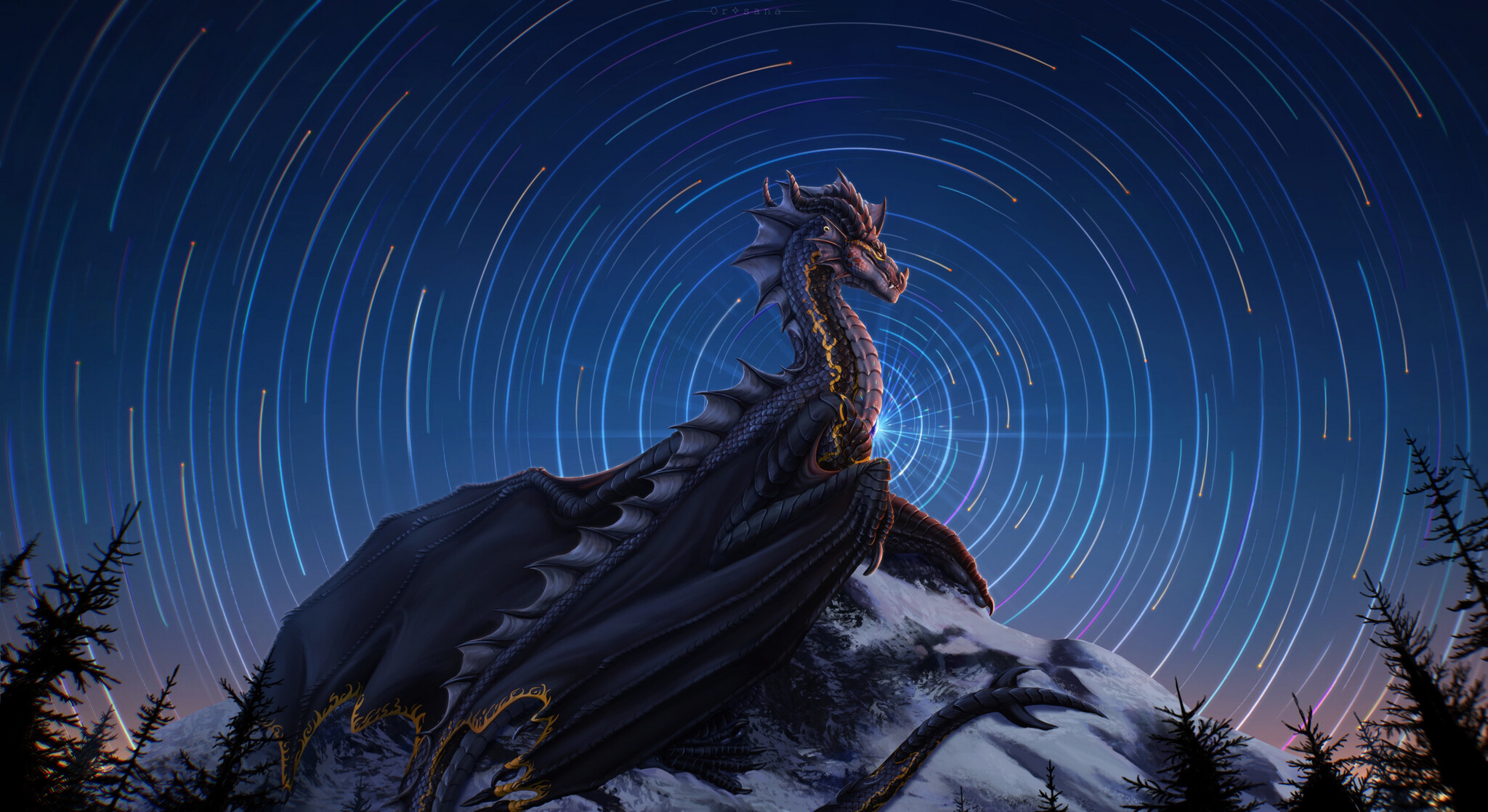 ✦ Драконы — самые массивные, мощные и сильные существа, но, несмотря на свою смертоносность, они также изящны и элегантны. Это невероятно величественные, властные, но в то же время мудрые существа, стоящие на страже и защите самой природы. Вращение звезд доказывает, как надолго они могут замирать... глубоко задумавшись, размышляя....... Все затихает, уступая место всемирному спокойствию. И тогда вы можете увидеть это... ✦ ©