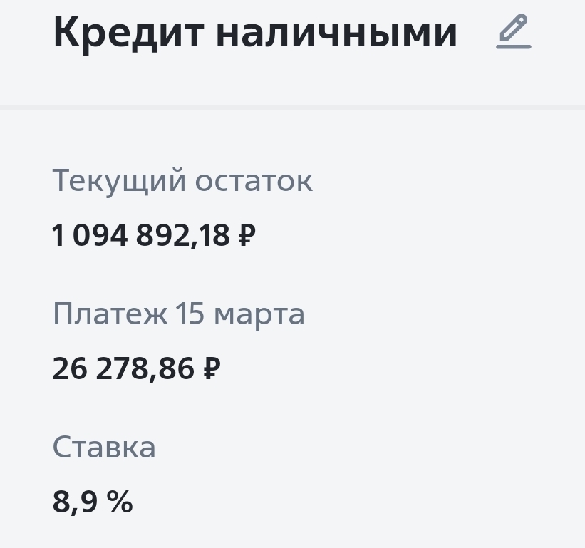 я 1,3 млн с учетом % вышло 1,42) погасил за 9 месяцев)) Но всё равно стрёмно было, когда через пару месяцев после взятия кредита (на квартиру) сокращение на работе и не знаешь уволят или нет