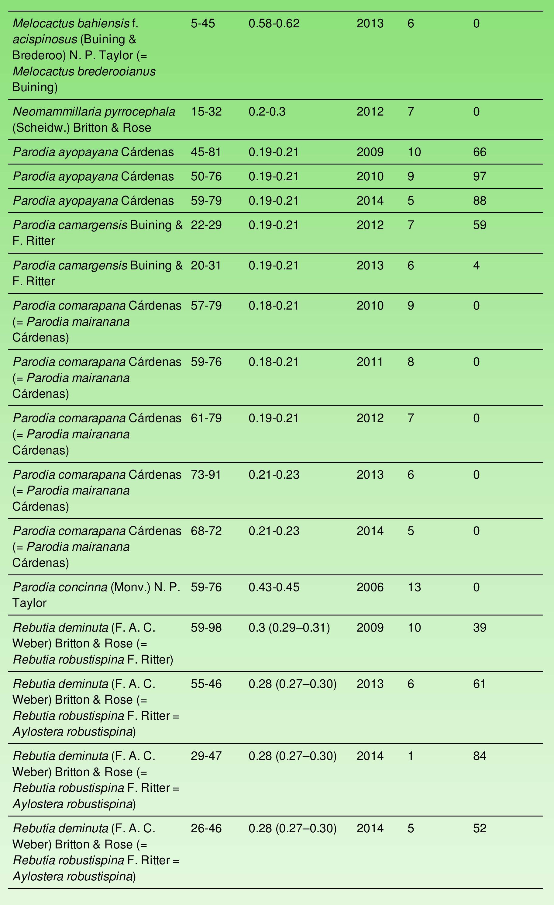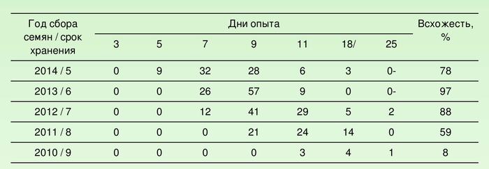 В табл. 2 представлена динамика прорастания семян Parodia comarapana разных лет сбора.