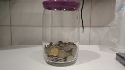 У меня для мелочи герметичная банка из Ашана. Сейчас там 1,44 кг. Вес вместе с банкой. Но я не только десятки - я всю мелочь высыпаю. Навскидку больше 300, но меньше 500 рублей. Ближайшие 7 дней зарплата (на карте есть 5500) - так что мелочь будет копиться дальше.