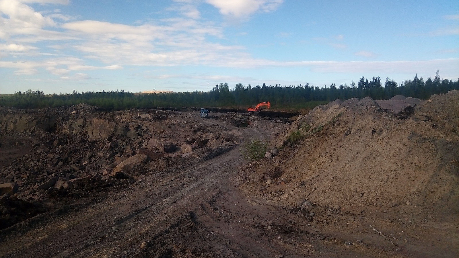Карьер новый, еще идут вскрышные работы (зачистка месторождения от почвенного слоя и осадочных пород).