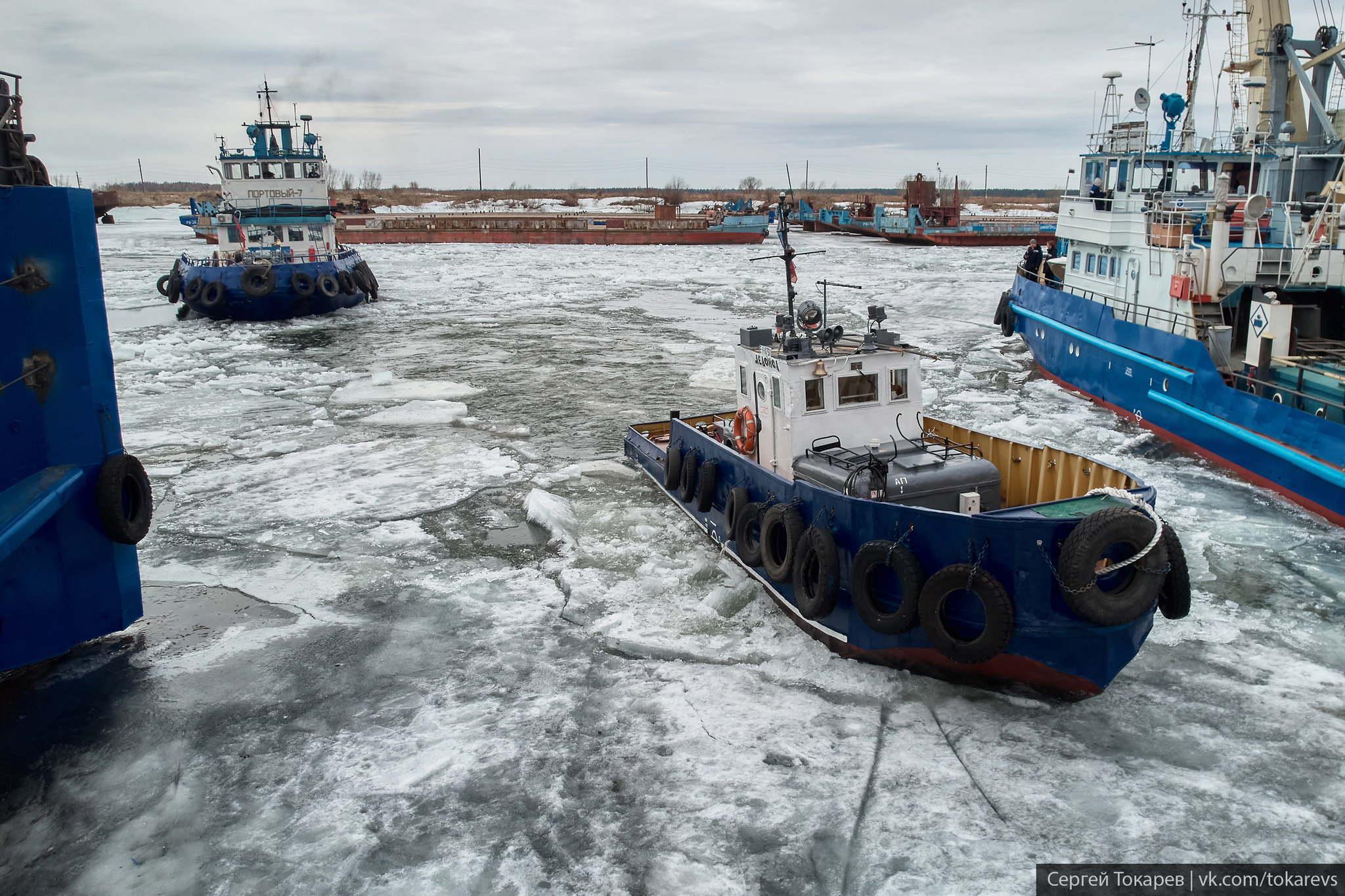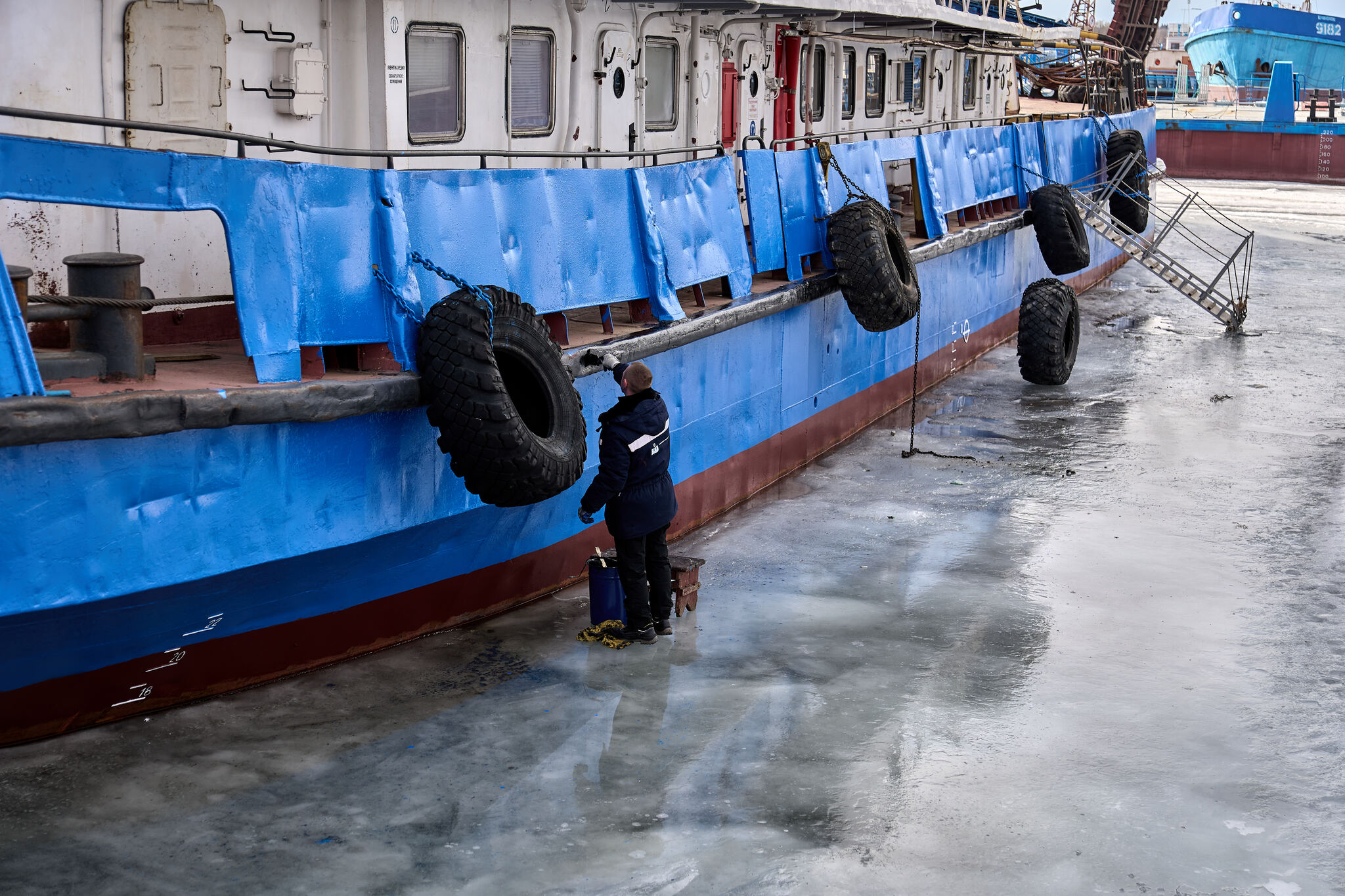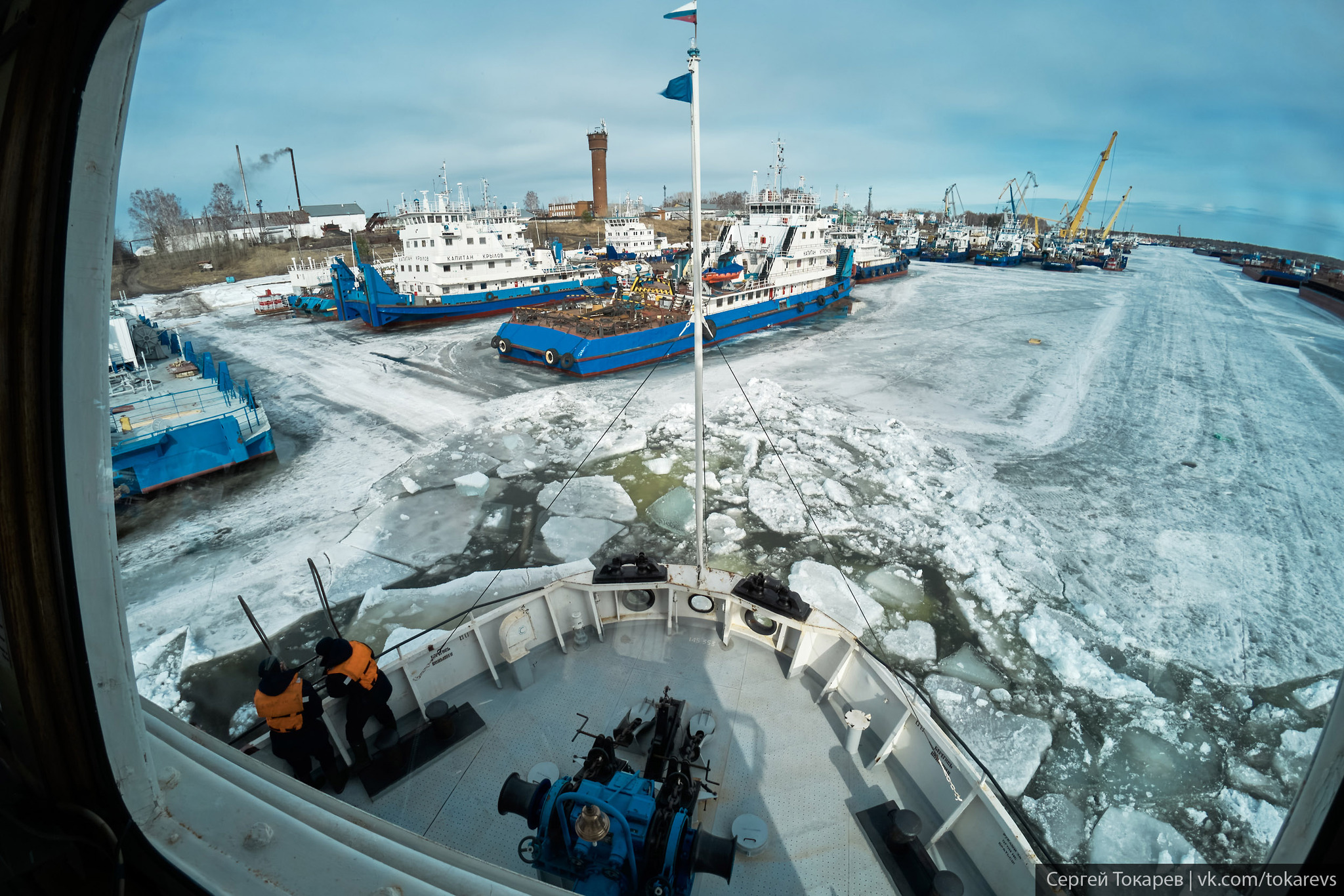 Зимой суда не стоят просто так. Их обслуживают, ремонтируют, чтобы шесть месяцев летней навигации в тяжелых северных условиях они проработали без каких-либо сбоев. По толстому льду к судам можно легко подвести тяжелое оборудование, провести внешние работы. Так что зимой речники тоже не отдыхают, каждая команда готовит свою машину к долгому летнему плаванию.