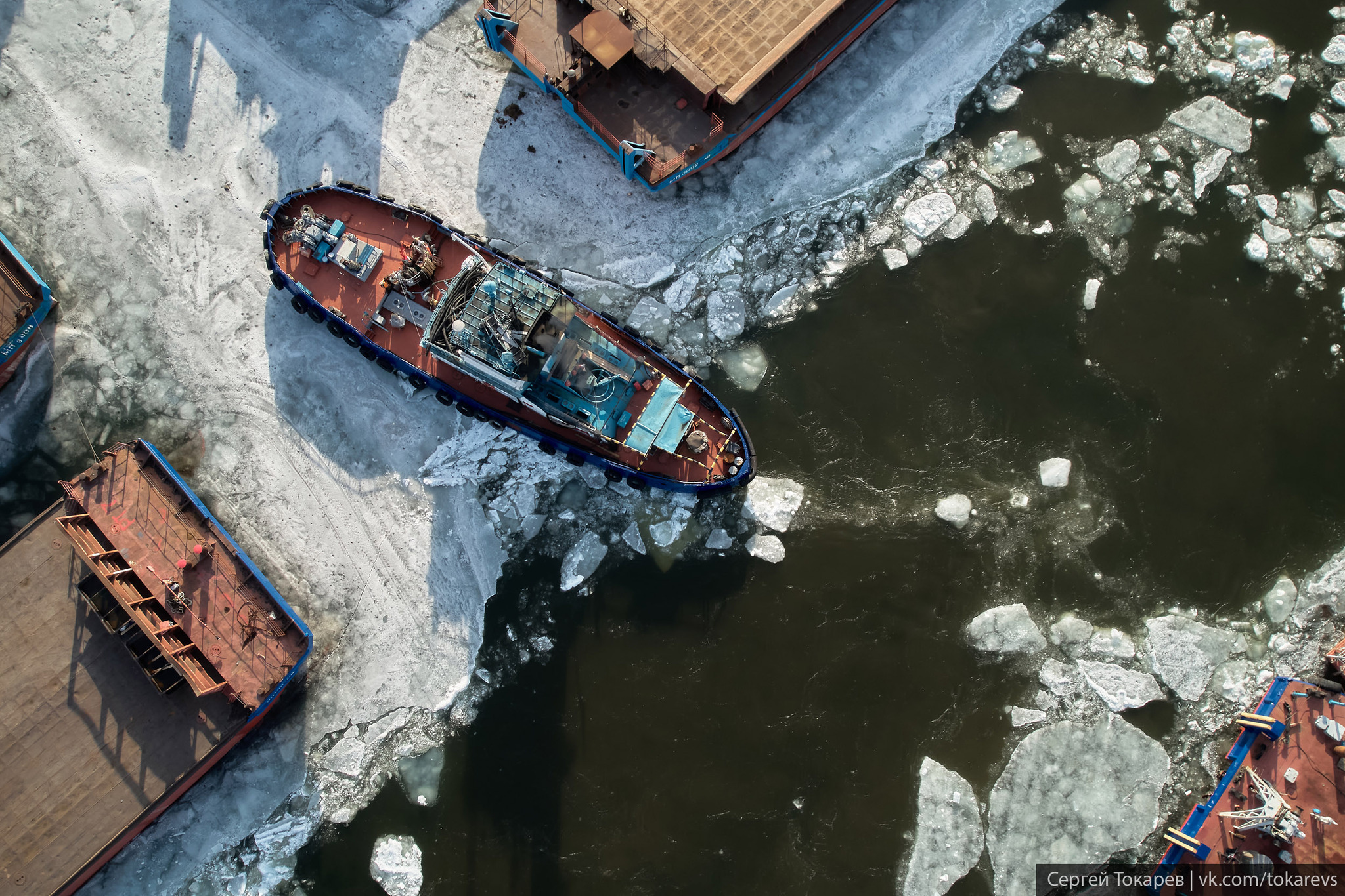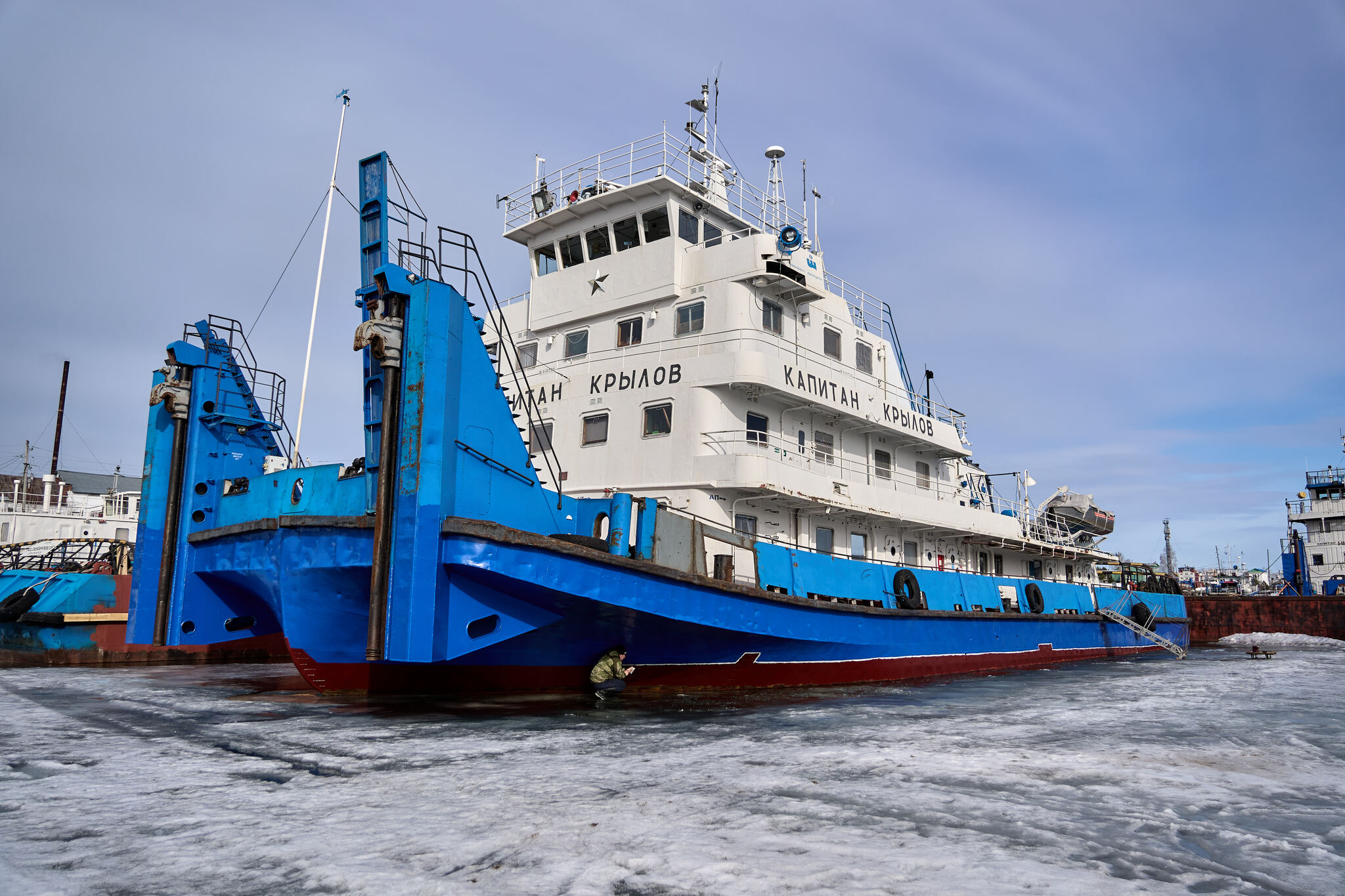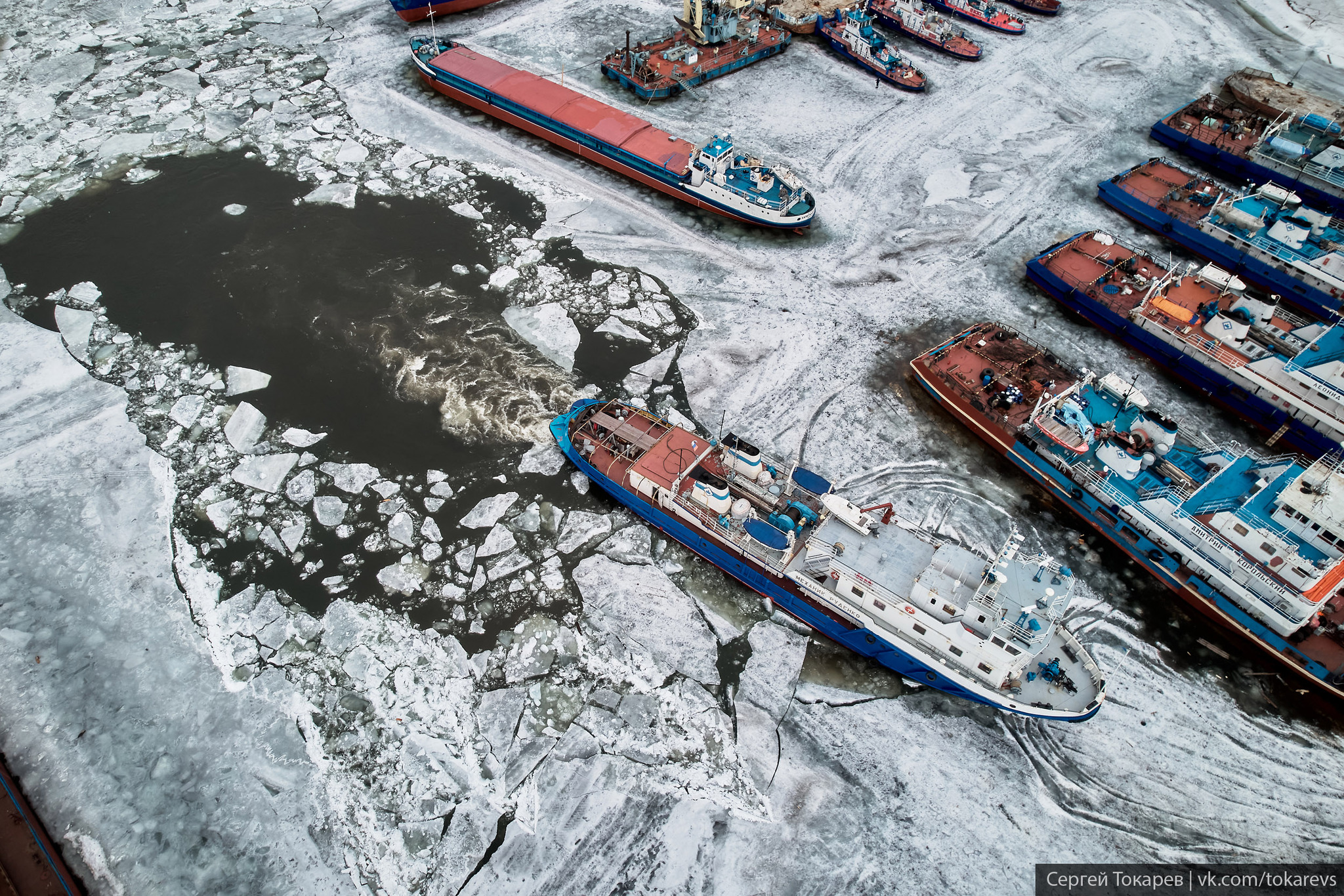 Зимой суда не стоят просто так. Их обслуживают, ремонтируют, чтобы шесть месяцев летней навигации в тяжелых северных условиях они проработали без каких-либо сбоев. По толстому льду к судам можно легко подвести тяжелое оборудование, провести внешние работы. Так что зимой речники тоже не отдыхают, каждая команда готовит свою машину к долгому летнему плаванию.