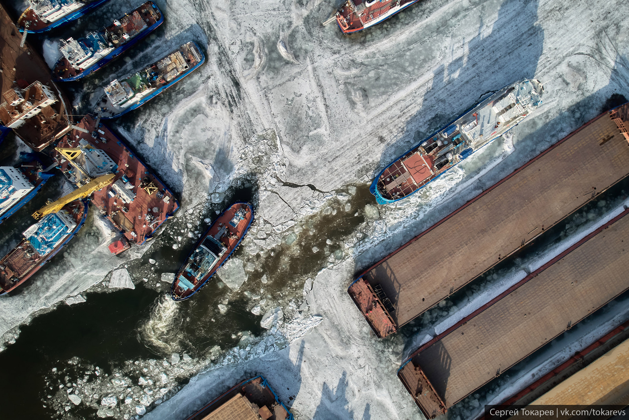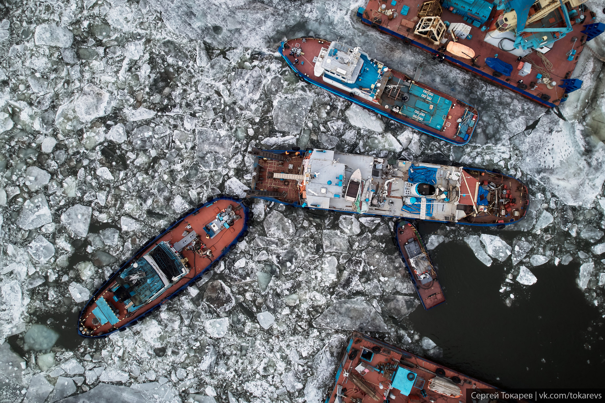 Думал я как-то, вот, было бы классно поснимать ледоколы, как они лед ломают и пробивают путь судам. А в итоге нашел их где-то в северных морях, у нас на Енисее. Не атомные, конечно, но впечатление тоже яркое.