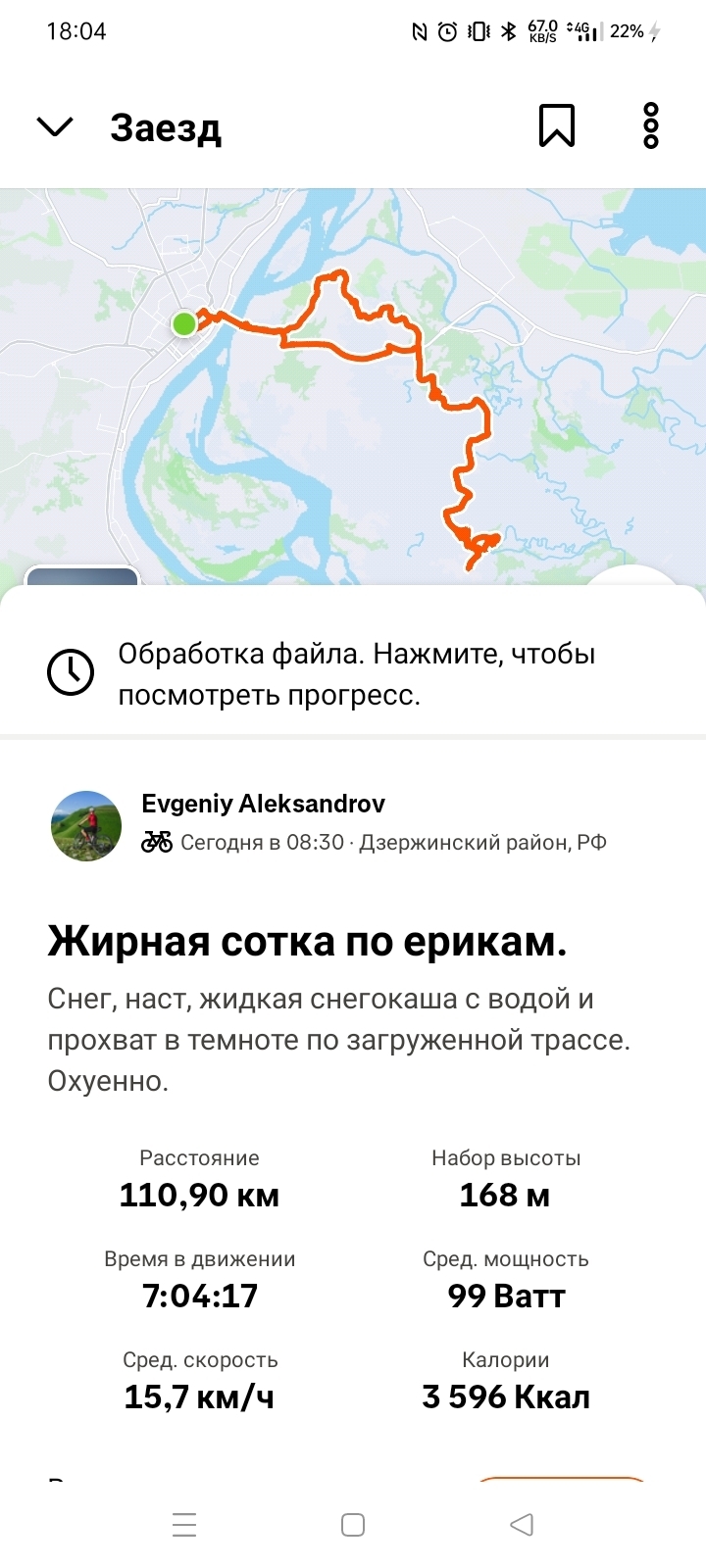 Солнце потихоньку клонилось к горизонту, пришлось исключить последние 10 километров льда/грунтов, чтобы не ковыряться там в темноте и проехать эту десяточку по асфальту. Несмотря на 90 километров в ногах, скорость на нём стабильно держалась в районе 25-27, чтобы быстрее пролететь этот неинтересный и не очень безопасный в темноте участок.