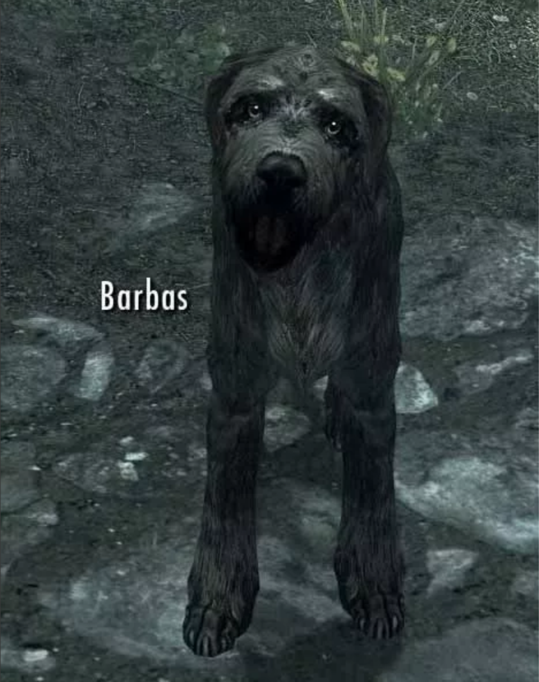По Скайриму бродят мамонты, гигантские ящеры, Кошколюды... А тебя удивляет какая-то говорящая собака?!