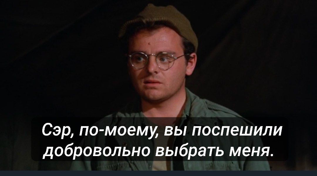 15 gmAvatar Вспоминаем сериалы. M*A*S*H. Добровольно-принудительно Серия M*A*S*H 4 месяца назад 2 серия 3 сезонРадара добровольно-принудительно назначили в помощь. Mash Чёртова служба в госпитале МЭШ Сериалы Юмор Добровольцы Картинка с текстом 1 Ещё 0