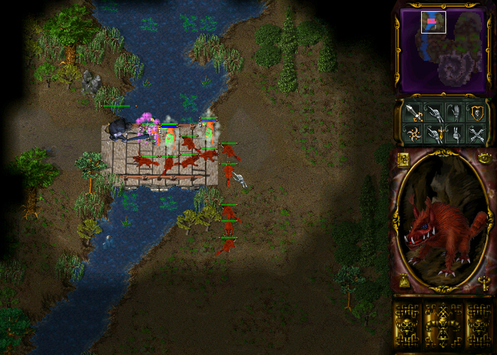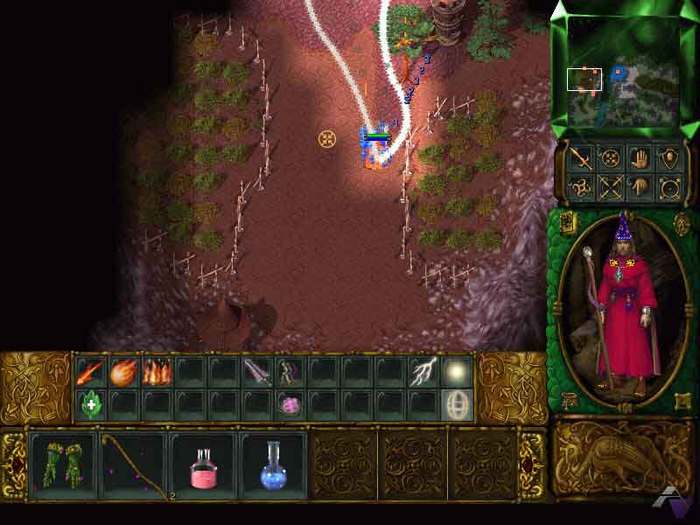 По мере прохождения заданий которые к слову мы брали в главном городе Умойра Плагат, мы так же могли повышать навыки героя, покупать новинки в оружейном магазине, а так же нанимать людей, либо героев в отряд. Это главная особенность игры, вы не один пытаетесь спасти эти земли, но и наемники, естественно за деньги любезно помогут в убийстве тех или иных монстров, которых в игре порядка 50 штук. Битвы в игре проходят в реальном времени, по этому здесь важна тактика и грамотные расстовления персонажей, магов по дальше, танков по ближе, в игре отсутствует пауза по этому даже в боях с белочками, не говоря уже про троллей и драконов очень легко умереть, но стоит и аккуратно следить и за наемниками, они так же могут покинуть сей мир и увы, уже не появятся в городе. Но если они остаются в живых то со временем их экипировка как и навыки станут лучше. Всего мы могли управлять группой из 26 персонажей. Это была первая игра которая столь удачно скрестила рпг и ртс. Не смотря на сложность, в нее хотелось играть, ведь мы окунались в этот мир и сопереживали простым жителям, потому что этот мир был живым, наполненный историями которые создавали мы с вами. В игре была и сетевая часть, мультиплеер на 16 человек, но большинство из нас не обладали тогда интернетом как таковым, хотя бы даже модемным по этому многие из нас поиграли в мультиплеер уже второй части.
