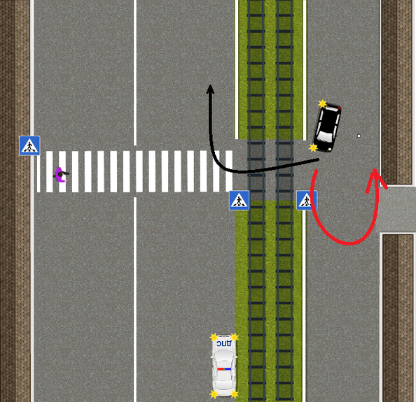 Садимся на диван, пристегиваемся, едем дальше. Есть две дороги, разделенные трамвайными путями: одна основная, другая дублёр. По какой сам поедешь?.. Двигаясь по дороге-дублёру на своём гангстерском чёрном Daewoo Matiz, вы решили выехать на основную по указанной траектории.