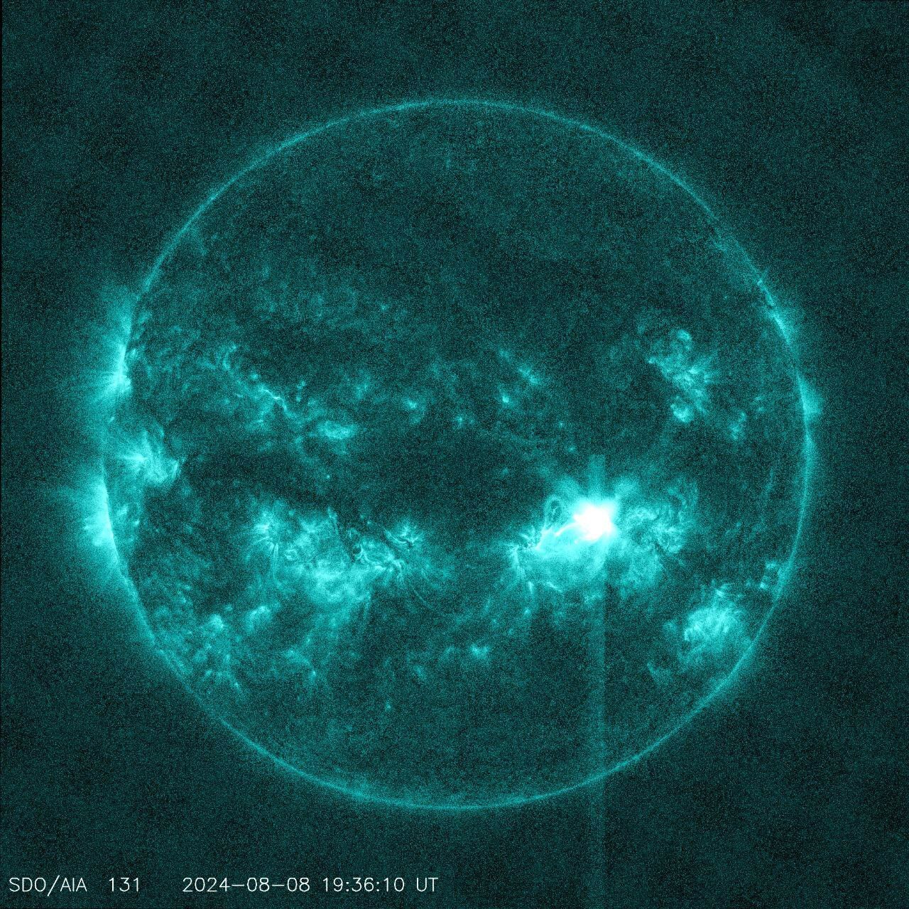 8 августа примерно в 22:30 МСК из группы пятен 3777 произошла сильная вспышка с выбросом корональных масс, о котором говорит сопутствующая вспышке радиоэмиссия II типа.