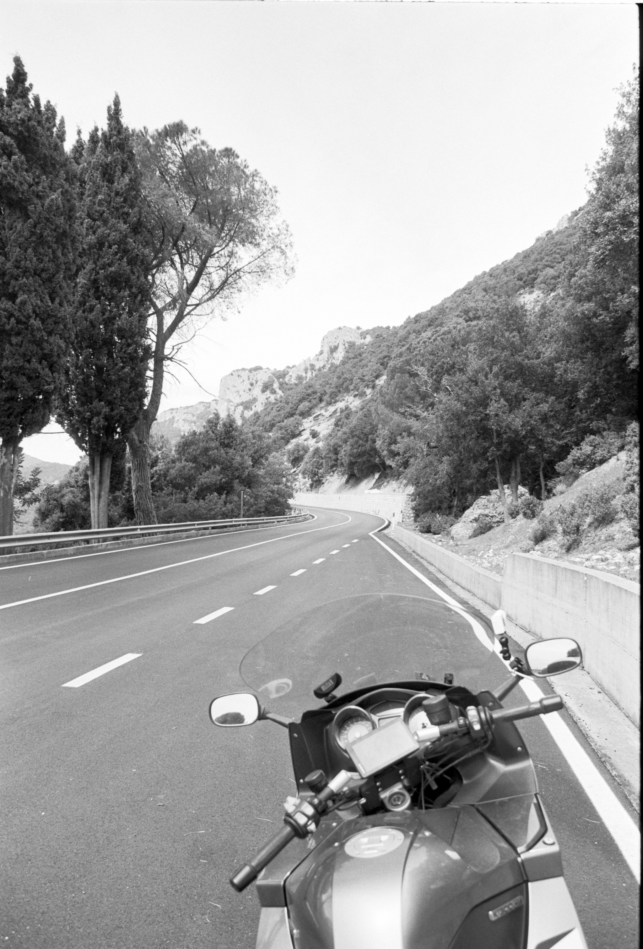 День 5. Вечером следующего дня мне нужно было быть в Ольбии и грузиться на паром. В первую очередь мне хотелось покататься. Покататься получилось с лихвой, аж жопу ломило, но это не то. Приехал я за горами без снега. А это на Сардинии есть. На востоке острова проложена дорога SS125 Orientale Sarda. Идёт она как раз от Кальяри до Ольбии. Наиболее живописный участок находится между городками Баунеи и Доргали. Там суммарно около 300км. Часов за 5-6 проехать можно, с остановками. В прогулочном режиме. Затариваемся... бутербродами и энергетиками... Думая, что по пути удастся найти нормальную жральню. На самом деле, достопримечательностей на этой дороге столько, что 5-6 часов - это безумно мало. Одна только прогулка по каньону Гарропу займёт часа 4, но для этого нужна несколько иная форма одежды, точно не мотоэкипировка + накопленные за зиму жирки не дали бы мне там никаких шансов. Поэтому всё проезжаем мимо, делая редкие остановки на посмотреть-пофоткать.