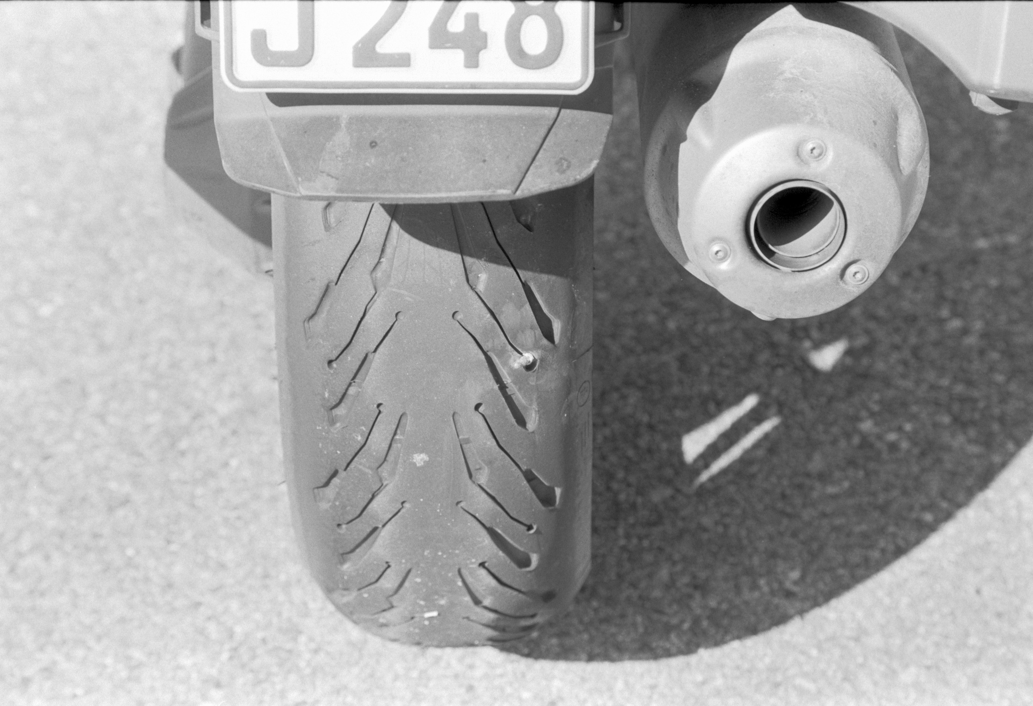 Проезжая очередной тоннель, замечаю, что у меня загорается лампа низкого давления в заднем колесе. На прошлом байке такое иногда случалось, когда датчик подглюкивает, однако, пару раз всё же тревога была не ложной, поэтому решаю доковылять до ближайшей стоянки. К сожалению, на этот раз тревога оказывается не ложной...