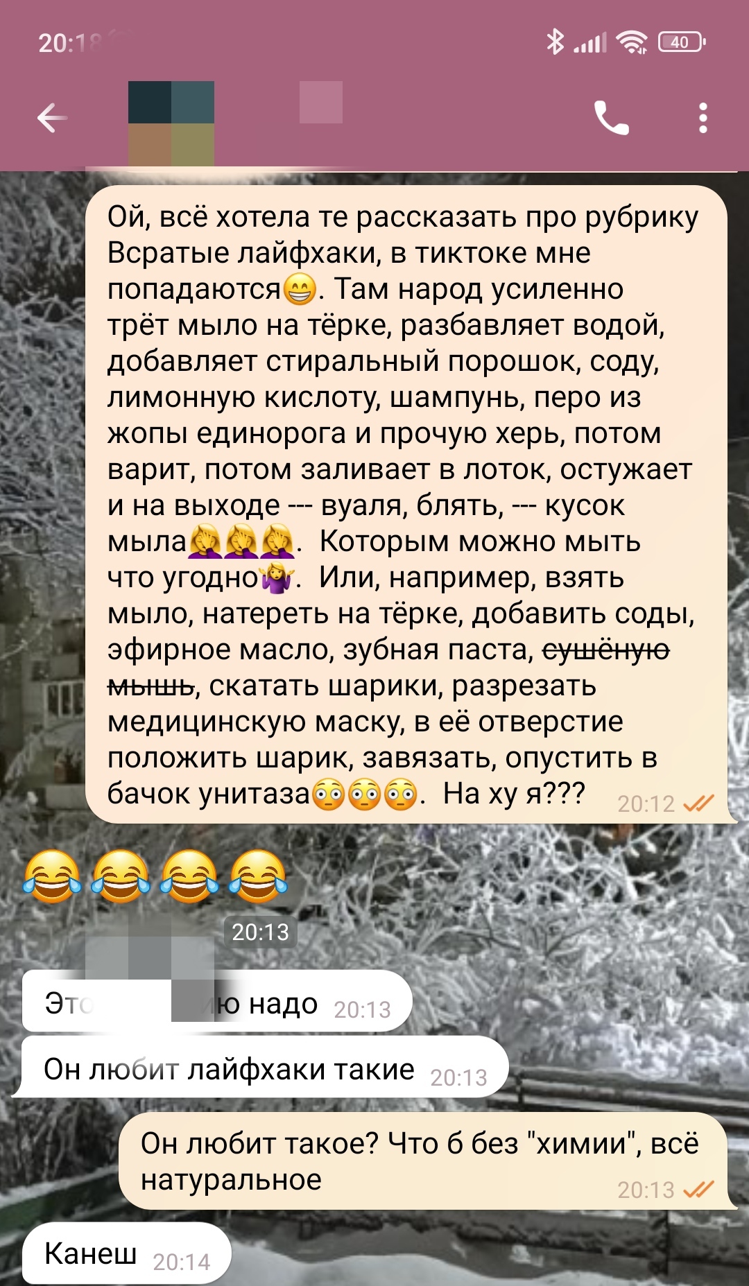 6 Letinka Всратые лайфхаки 1 год назад Подруга прислала [моё] Сомнительные лайфхаки Лайфхак Скриншот Тиктокеры TikTok Переписка Диалог Чат Социальные сети Ещё 0