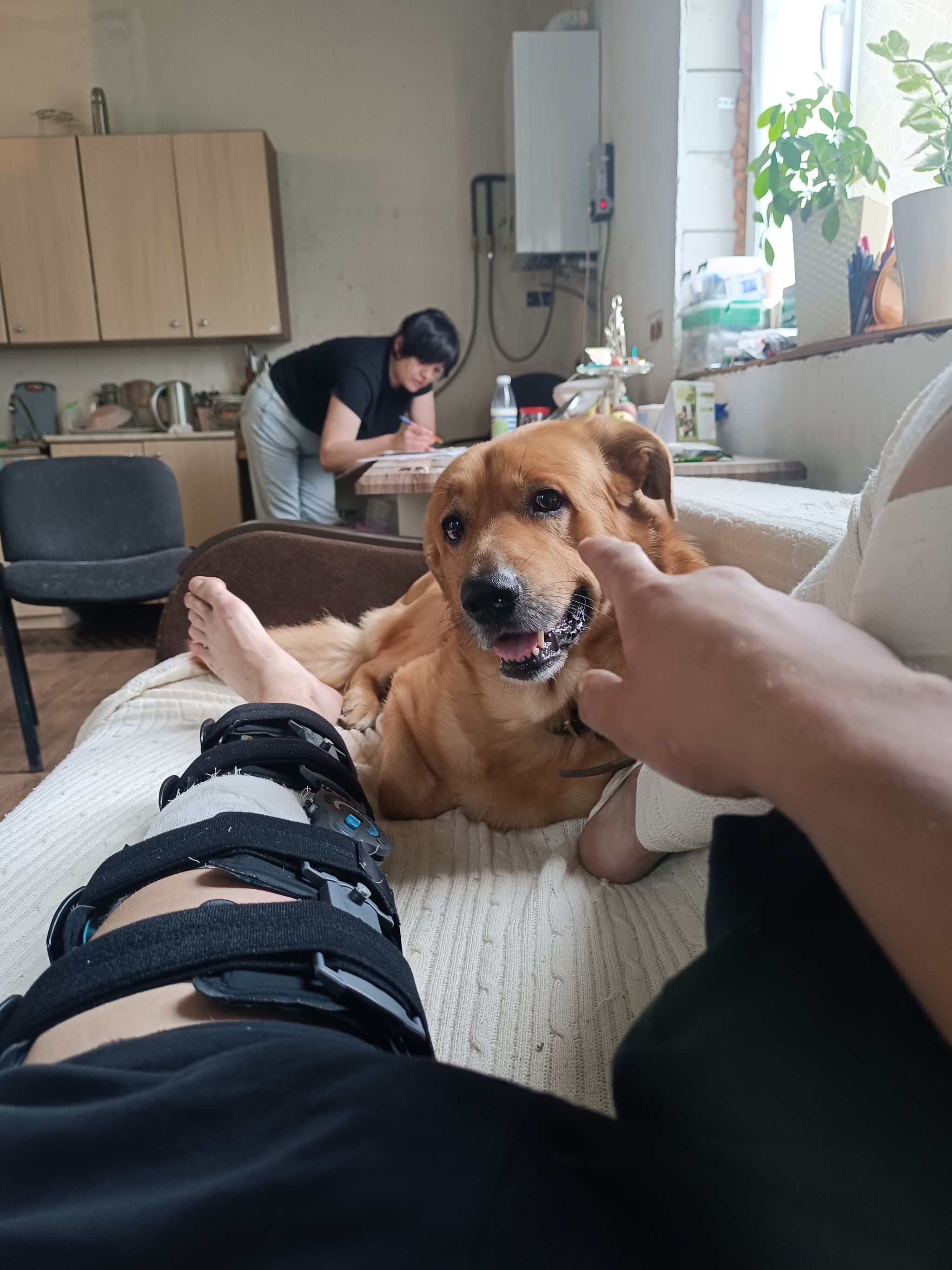 Вставил коленную чашку на место