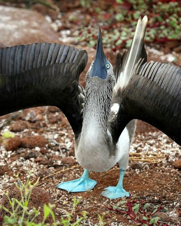 У Олуш голубые ноги. Это их достоинство и они ими гордятся. Чтобы приманить самку, олуши танцуют сложный танец: поднимают высоко ноги, переваливаются с ноги на ногу, смешно покачиваясь - как дурачки.