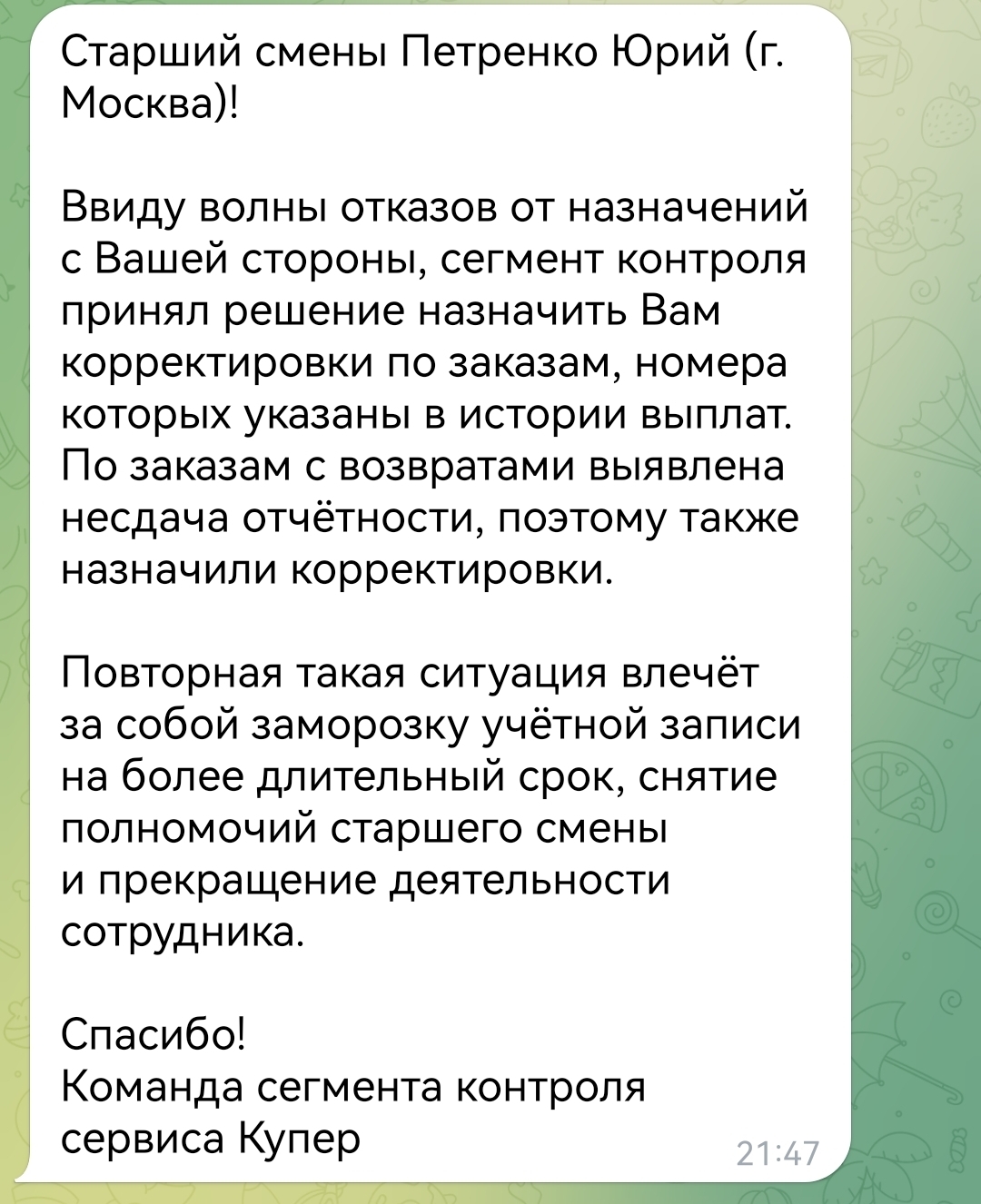 За несвоевременную сдачу отчётов - КОРРЕКТИРОВКА КАК ЗА МНОЖЕСТВЕННЫЙ ОТКАЗ/УТЕРЮ ИЛИ КРАЖУ ТОВАРА!