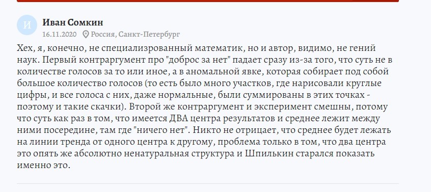 Это цитаты из исследования по различным голосованиям, в котором поясняется почему выводы Шпилькина невалидны, а его метод неприменим.