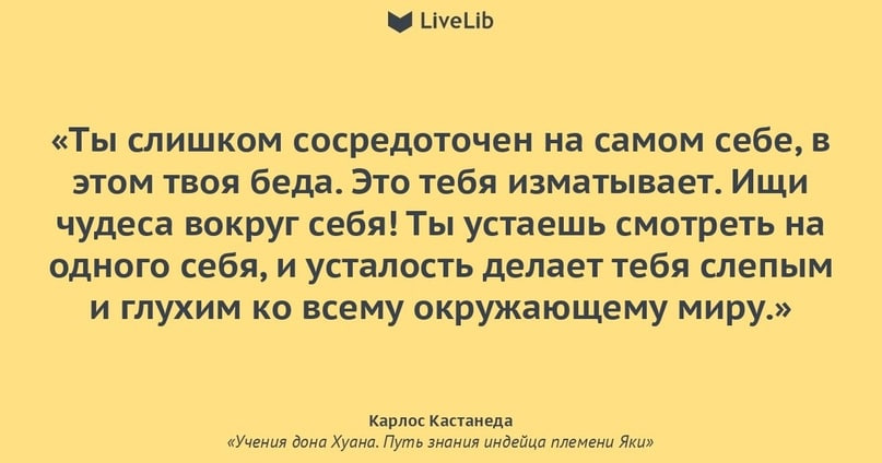 "Слишком сильное сосредоточение на себе порождает ужасную усталость. Человек в такой позиции глух и слеп ко всему остальному. Эта странная усталость мешает ему искать и видеть чудеса, которые во множестве находятся вокруг него. Поэтому кроме проблем у него ничего не остается."