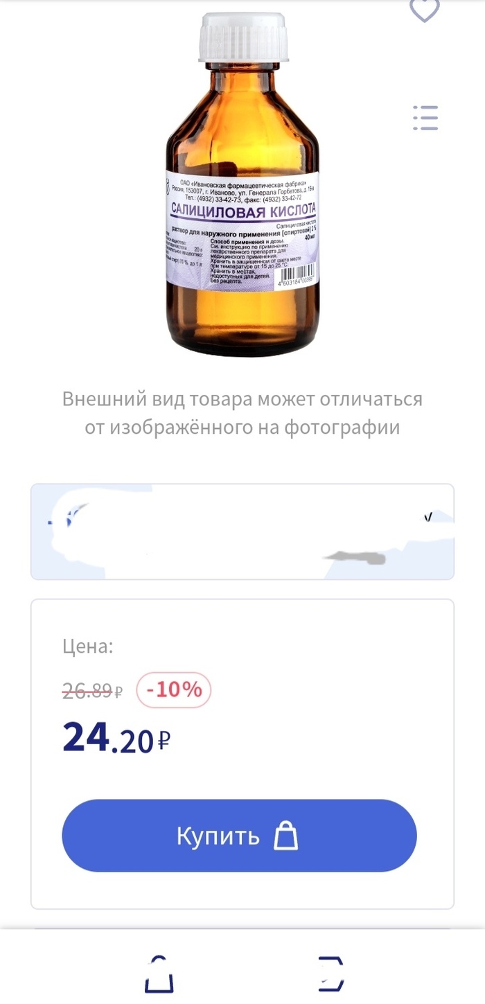 "О как,-думаю,- это, что же наш родной исконный "салициловый спирт"(на самом деле, конечно же, салициловая кислота), стали в фирменных всяких магазинах продавать, и даже пробники на него рассылать?