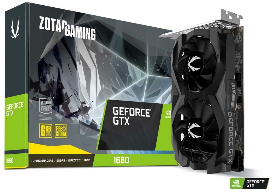 У NVIDIA нет reference комплектаций (Founders Editions) для продуктов более низкого уровня, что означает, что все карты имеют «кастомный» дизайн. В тестах PCgamer использовалась не разогнанная карта Zotac. В ней ничего особенного, хотя у неё 2 вентилятора для охлаждения длина всего 173мм, и она использует один 8-pin разъём, который технически не требуется. (Между прочим, в спецификации NVIDIA, вероятно из-за осторожности, указано, что один 6-pin разъём 6-pin разъём со слотом x-16 PCI-e должен обеспечивать мощность 120Вт, но при использовании 8-pin, NVIDIA может гарантировать, что карты не превысят мощность слота PCI-e.)