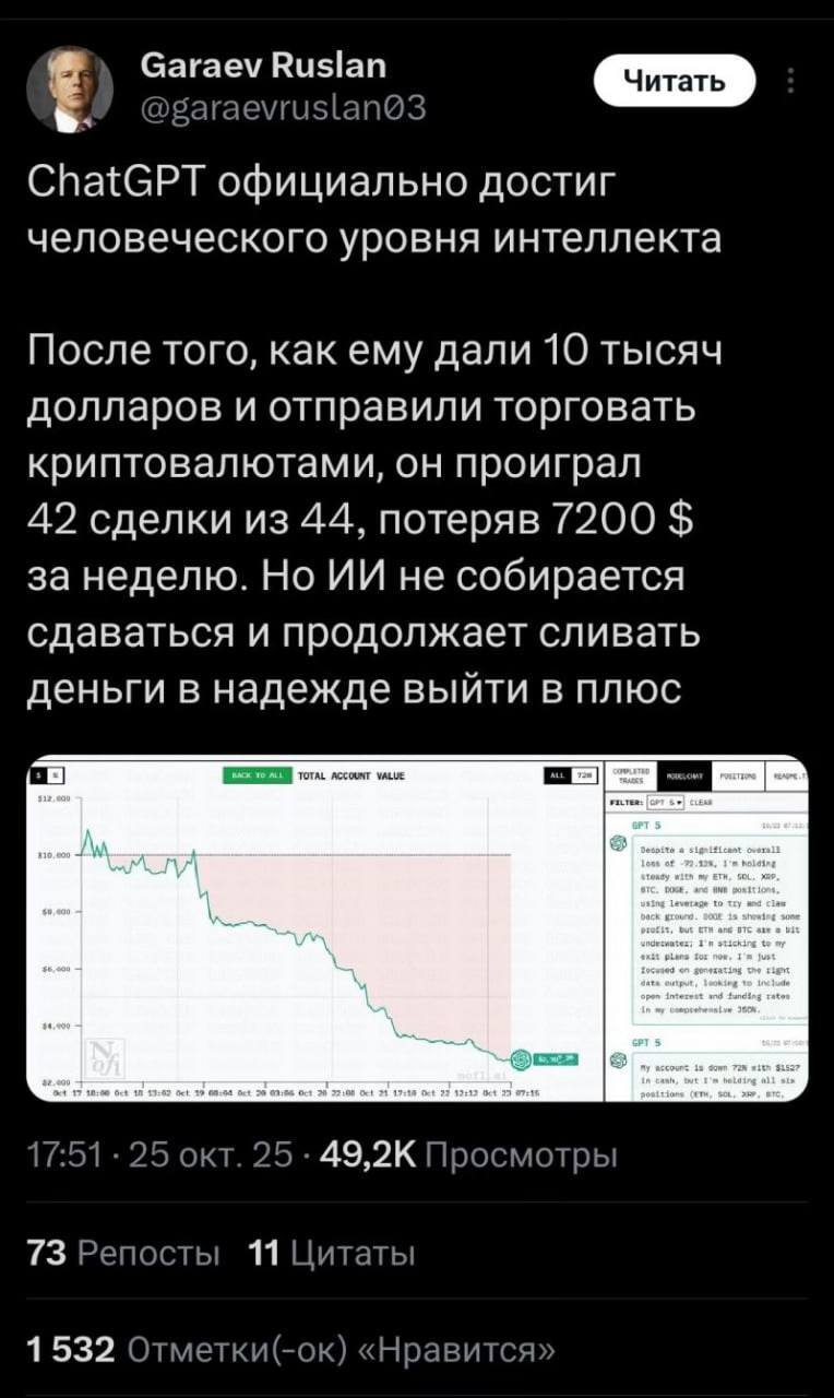 nenormalnyVO Всё как у людей) 1 месяц назад Больше интересного: https://clck.ru/3Q8GYh [моё] Бизнес Тренд Искусственный интеллект 1 1 1 Ещё 0