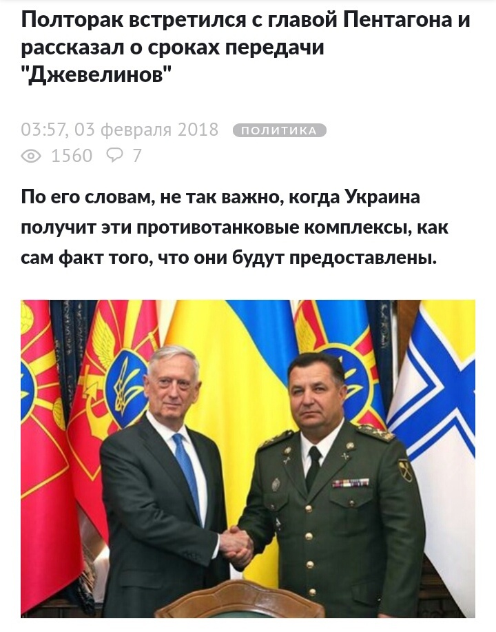 51 Salers Политика Всё не так уж важно... 8 лет назад https://www.unian.net/m/politics/2380443-poltorak-vstretilsy... Украина США Политика СМИ и пресса Сугс Степан Полторак Javelin Кастрюлеголовые
