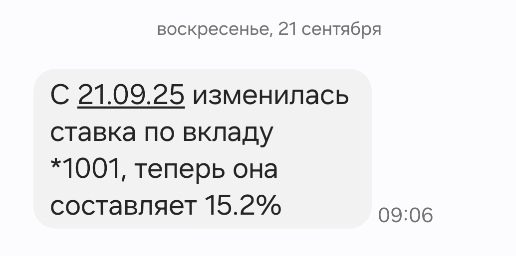 Проинформировав смс-кой, что с сегодняшнего дня процент по действующему вкладу уменьшен.