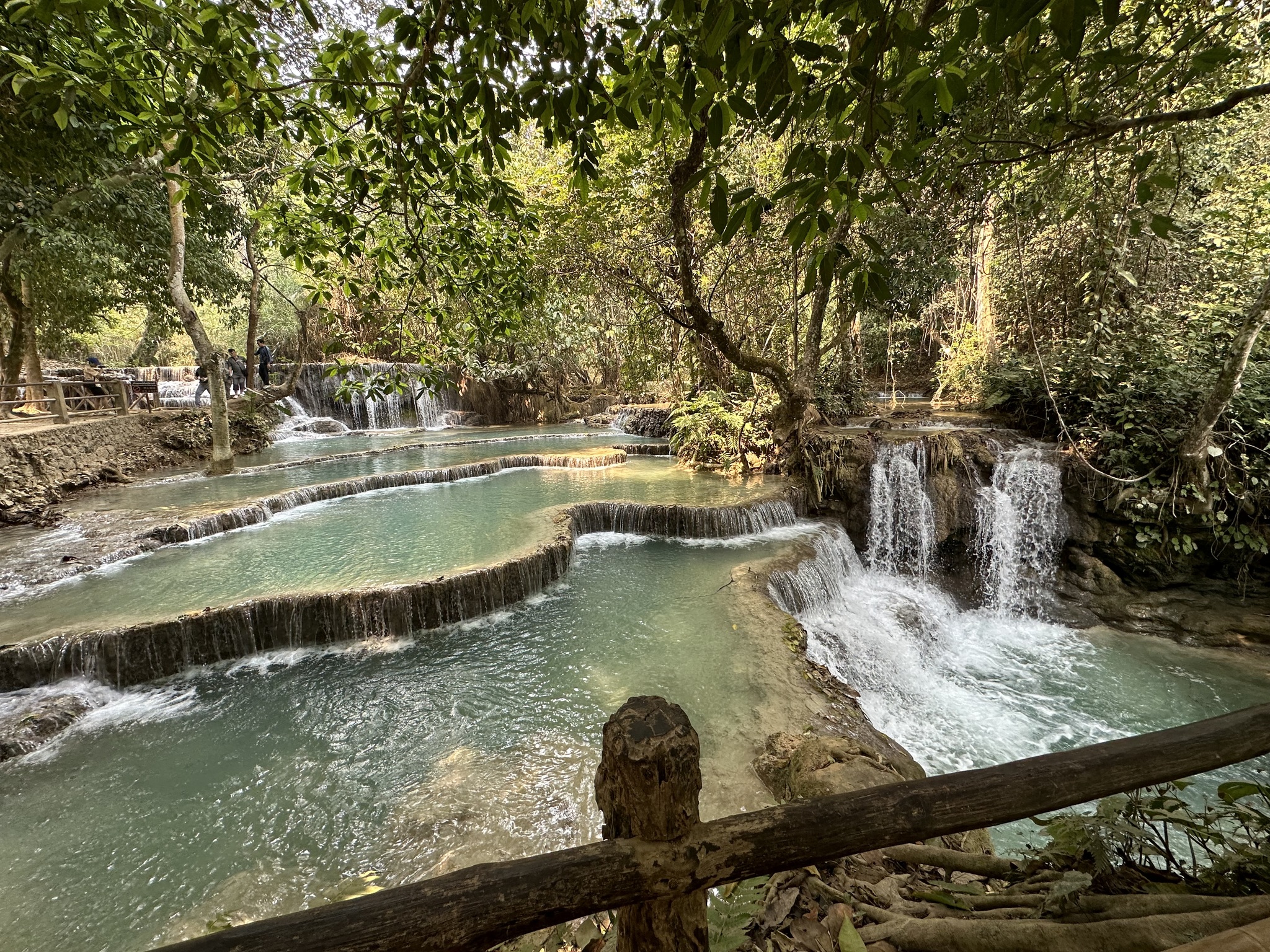 В Kuang Si очень красиво. И народу не так много. Есть конечно, но особо мы друг другу не мешались. Это целая группа водопадов, соединенных между собой. Вода там удивительно голубая. В некоторых бассейнах водопада можно плавать.