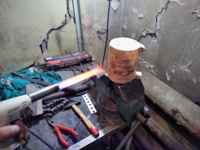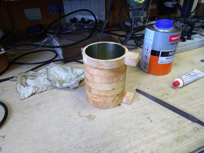далее была попытка сделать кружку из нарезаных и склеенных между собой колец ) протекала она зараза чем бы я ее не пропитывал