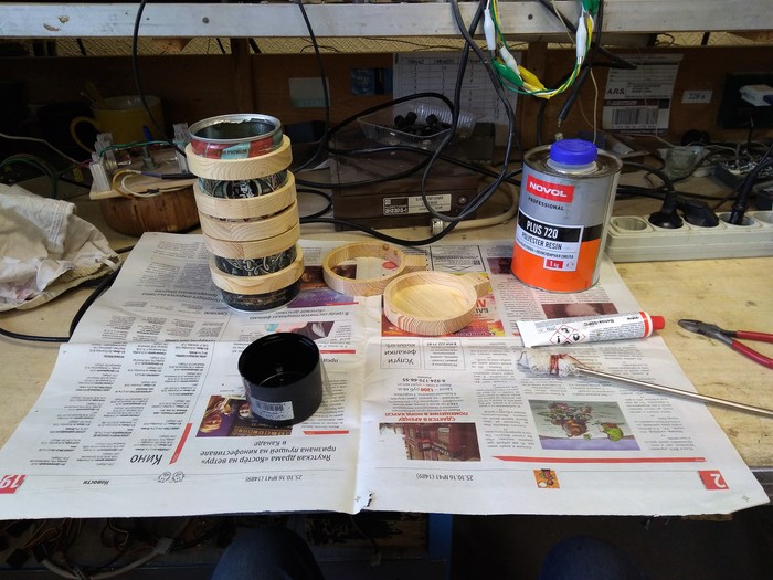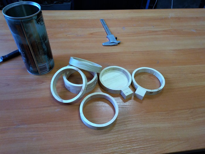 в итоге пришел к такой вот мысли ) пивная банка и нанизанные на нее круги из дерева