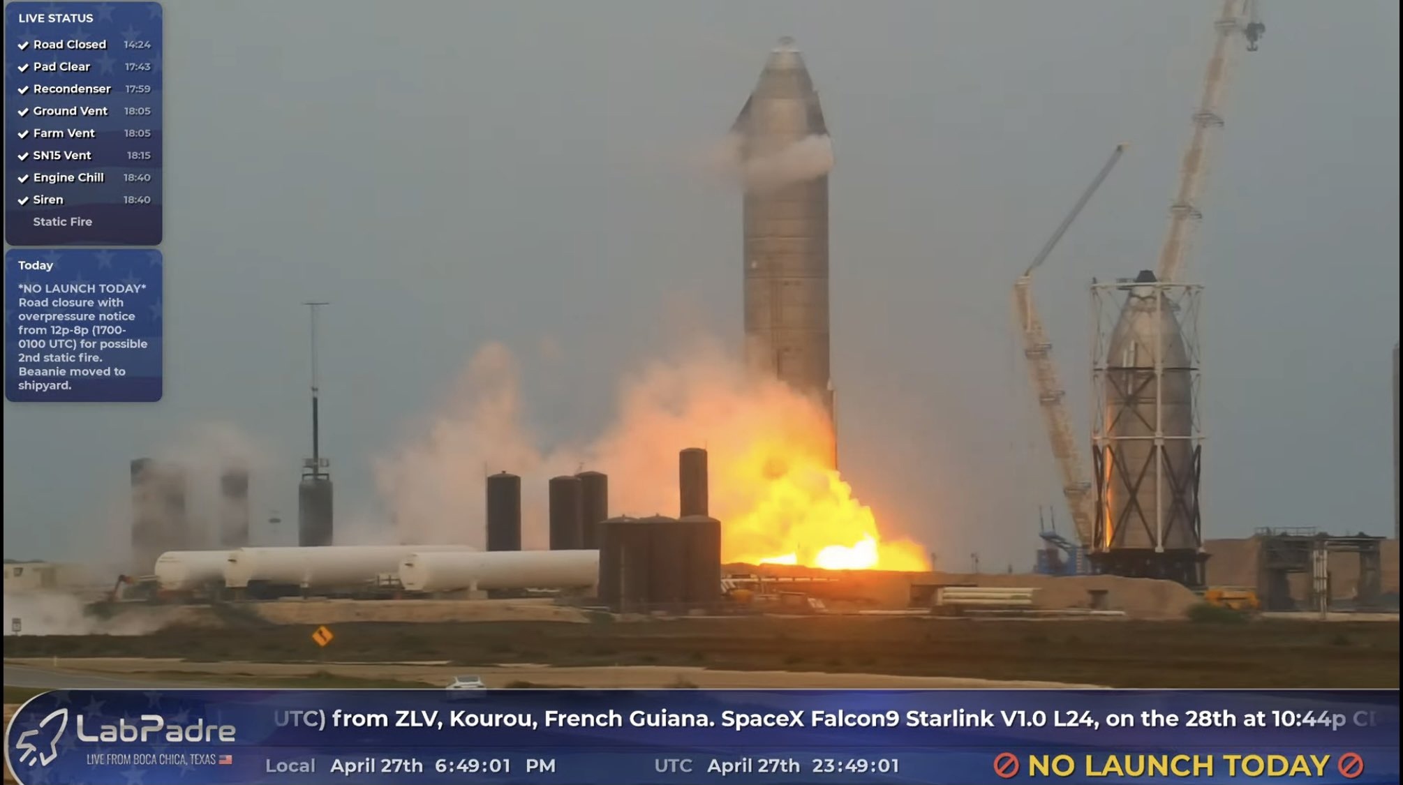 Этой ночью, в 02:49 МСК было проведено ещё одно огневое испытание прототипа. В этот раз использовались посадочные баки.
