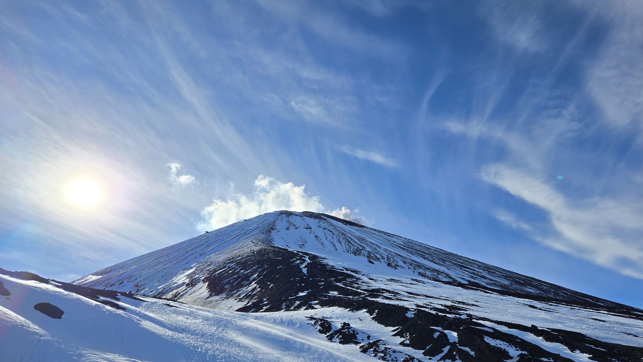 Каждый шаг дается с трудом, но сильно тяжелее не становится. Примерно на высоте 1600 вышли из облака и нам открылся во всей красе Корякский вулкан, выглядывающий из облаков и освещенный рассветным солнцем. Чёрт побери все эти страдания стоят того! Ляпота, что не снилась Ивану Васильевичу!