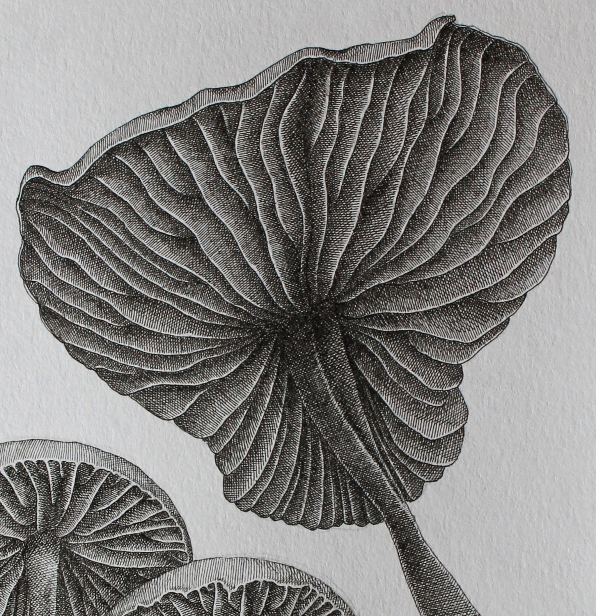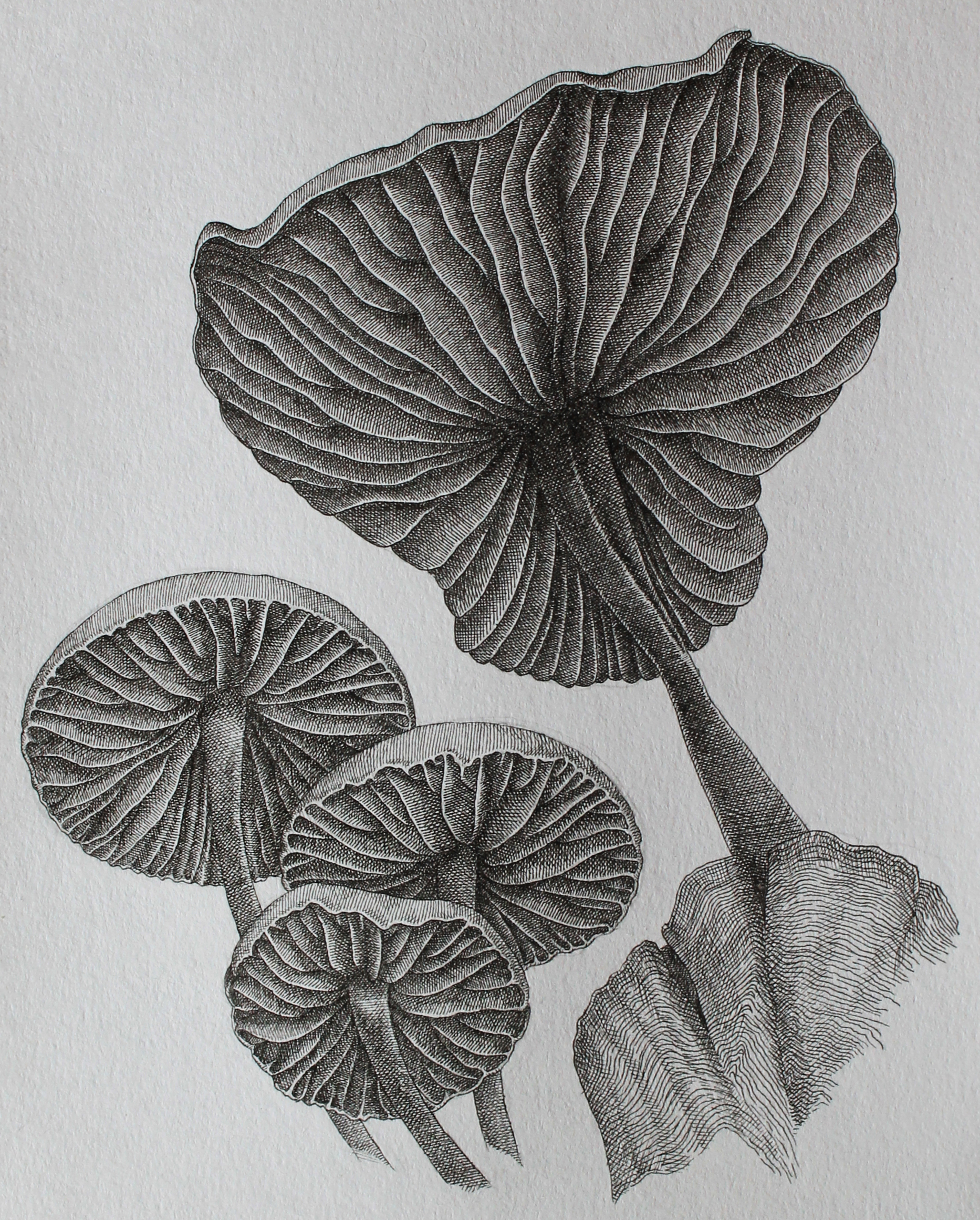 Почему грибы? Интересно их строение, и как его можно показать таким дотошным образом (ну ладно, еще была пройдена накануне вторая часть The Last of Us, навеяло, признаю). К слову, референс из интернета, немного поменяла местами грибы и их количество для удобства.