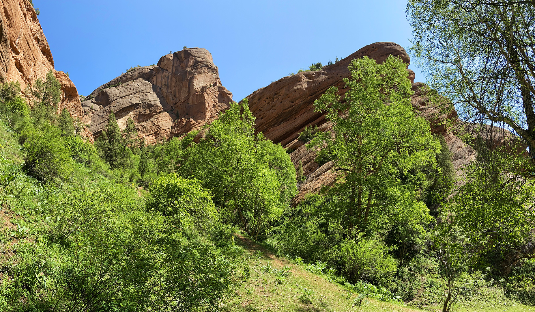 Киргизия, Ошская область. Про путь к первому водопаду тут. Второй водопад расположен недалеко. Вот путь, откуда мы пришли.