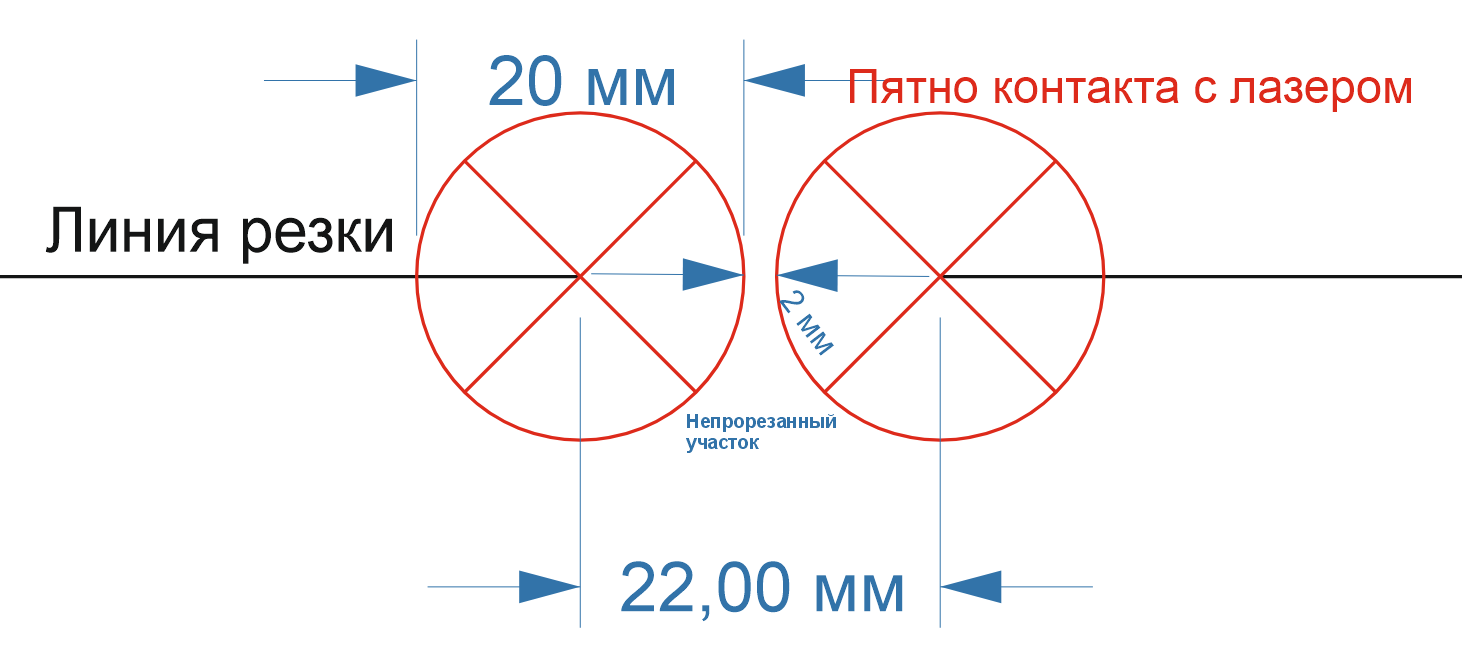 Вот только диаметр пятна контакта не есть ширина реза. И как считать диаметр гауссова пучка в контексте толщины реза не очень понятно. В реальности толщина реза зависит ещё и от плотности материала, его теплопроводности и способности отражать рабочий спектр лазера. Поэтому проще сделать тестовый прямоугольник, взять в руки старый добрый штандартенциркуль и просто померить разницу между отправленным и полученным.