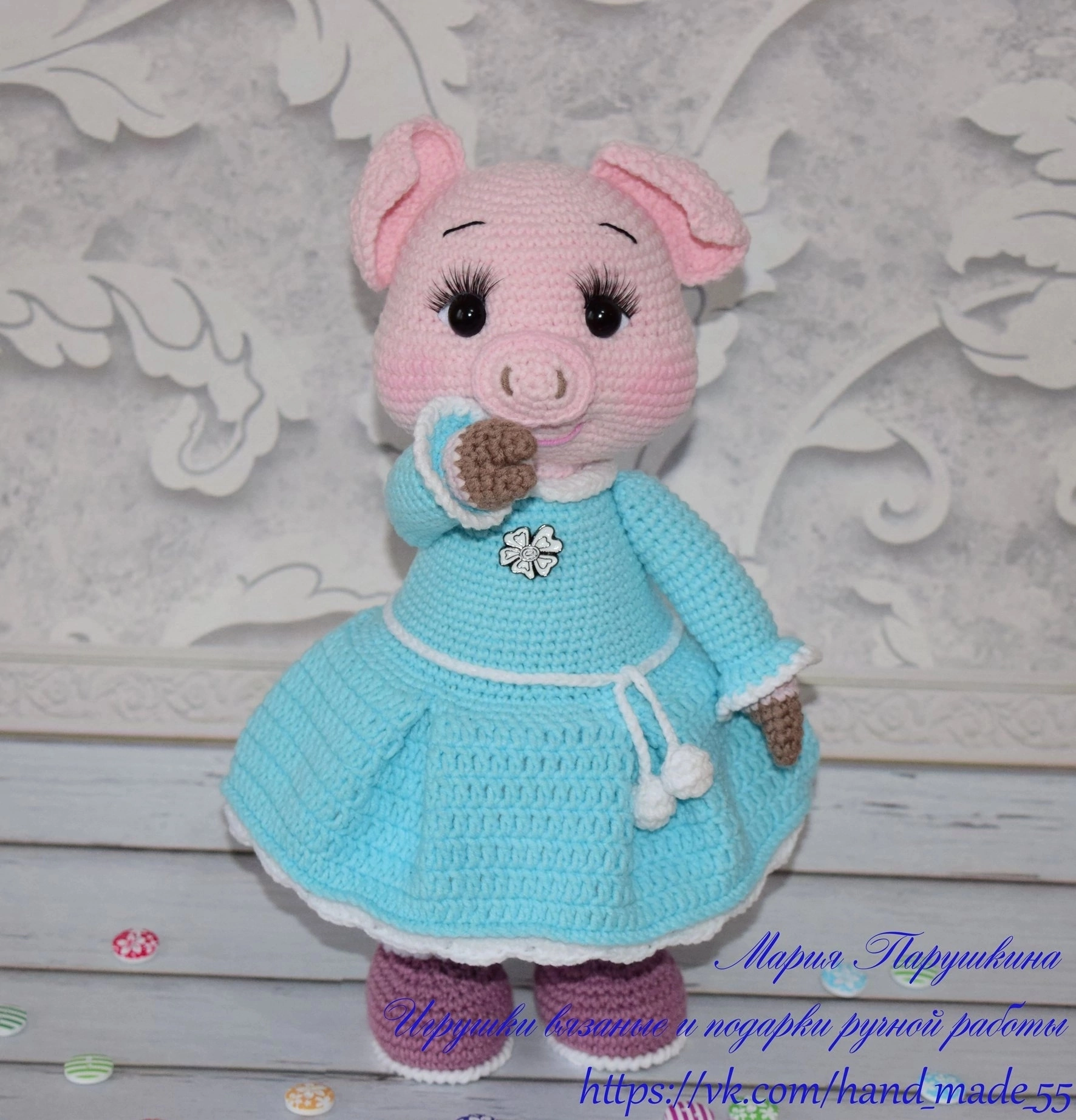 Вначале творческого пути жена вязала по покупным мастер-классам, но в 2017г научилась создавать сама!